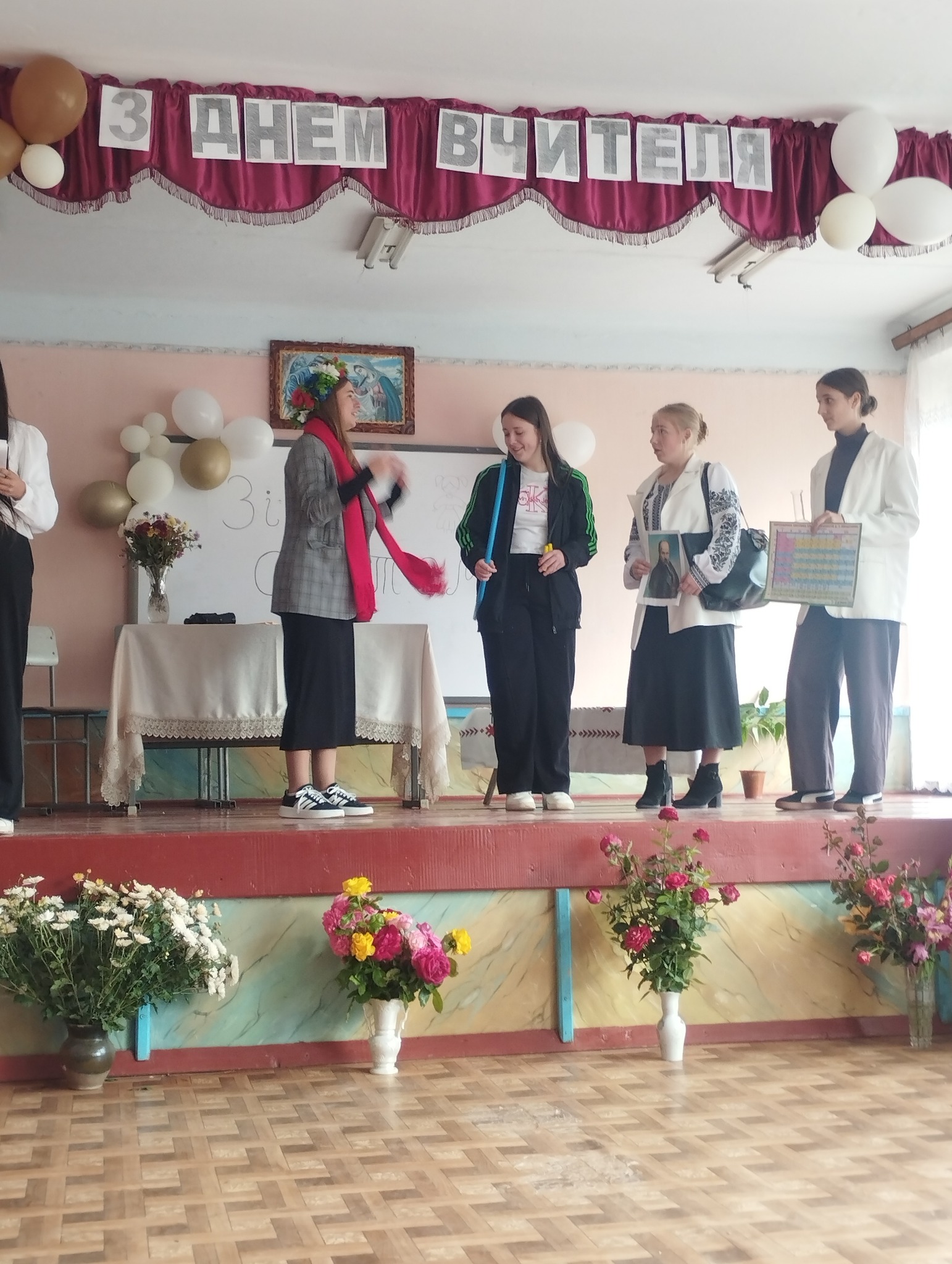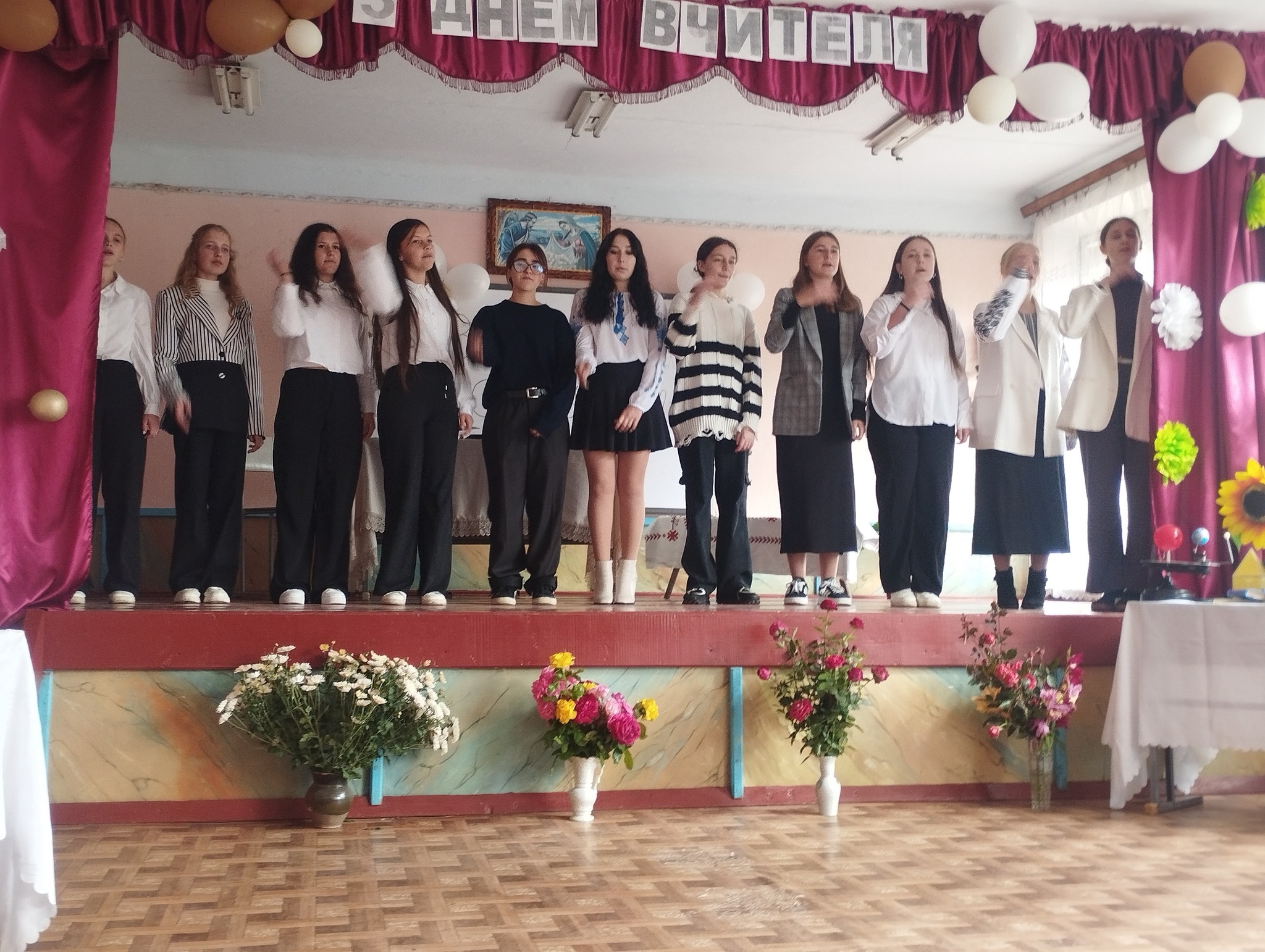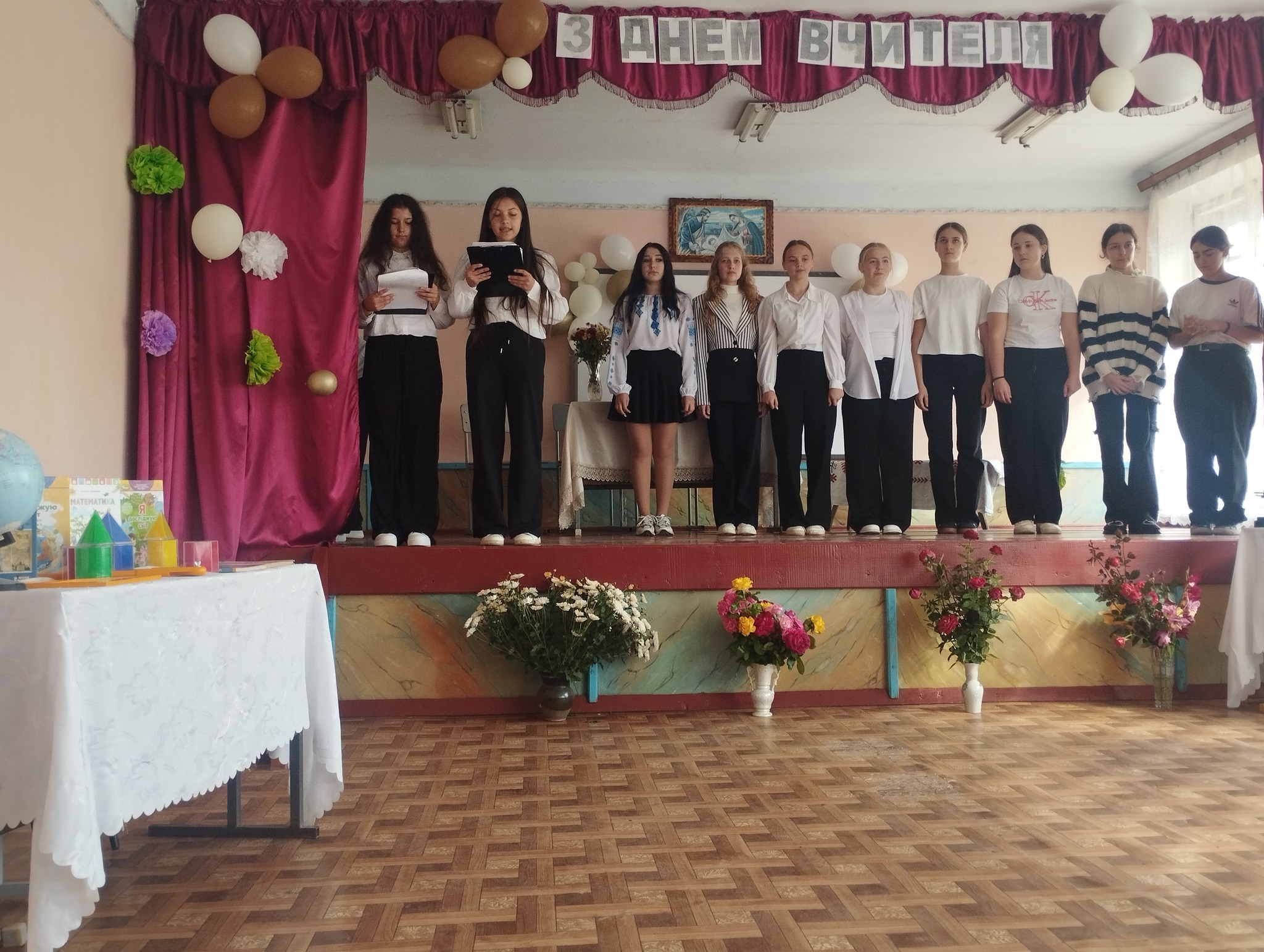 З святом, з Всесвітнім днем вчителя! Бажаємо миру, достатку, натхнення та радості. Дякуємо за Вашу невтомну працю, за те, що пробуджуєте в учнів жагу до знань, що щедро ділитесь своїм досвідом і постійно удосконалюєте свою майстерність. Нехай на Ваших заняттях панує атмосфера довіри, радості та віри у свої сили, легкої праці Вам бажаєм.Щоб гарний настрій був у Вас. Навіть у дуже скрутний час.Щоб все в житті було гладенько.І щоб ішло усе рівненько.Щоб всі Вас учні поважали,Приємні спогади лишали. Талановитих Вам та щирих учнів.