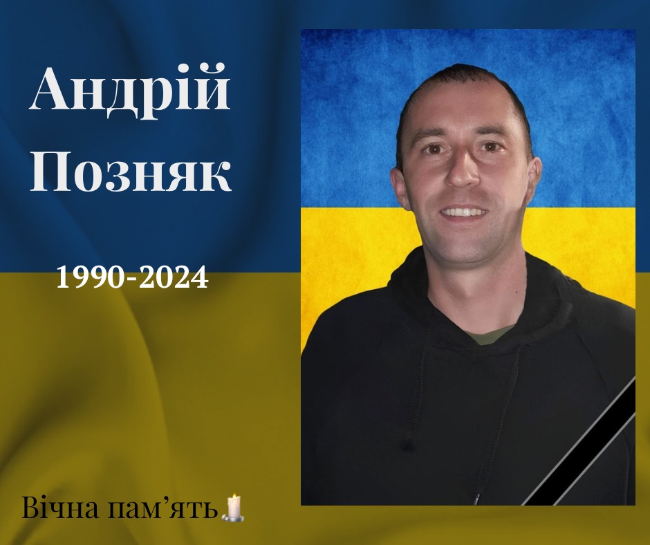 Андрій Петрович Позняк, вірний син України, служив у лавах Збройних Сил України на посаді водія господарчого відділення взводу матеріального забезпечення танкового батальйону військової частини. Його відданість та мужність були прикладом для багатьох. На жаль, у 2024 році, під час виконання чергового бойового завдання, захисник отримав смертельне поранення. Трагедія сталася в районі населеного пункту Максимільянівка, що на Донеччині, у Покровському районі.