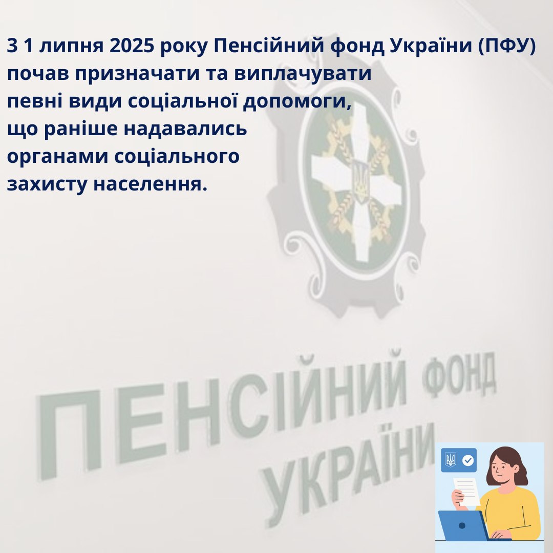 З 1 липня Пенсійний фонд України розпочав призначення та виплату окремих видів соціальної допомоги, які раніше здійснювалися органами соціального захисту населення.