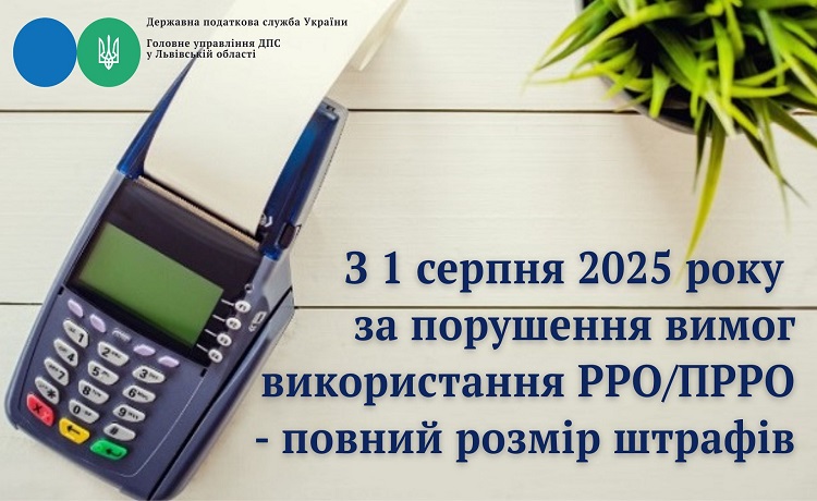 З 1 серпня 2025 року за порушення вимог використання РРО/ПРРО штрафи застосовуються у повному розмірі