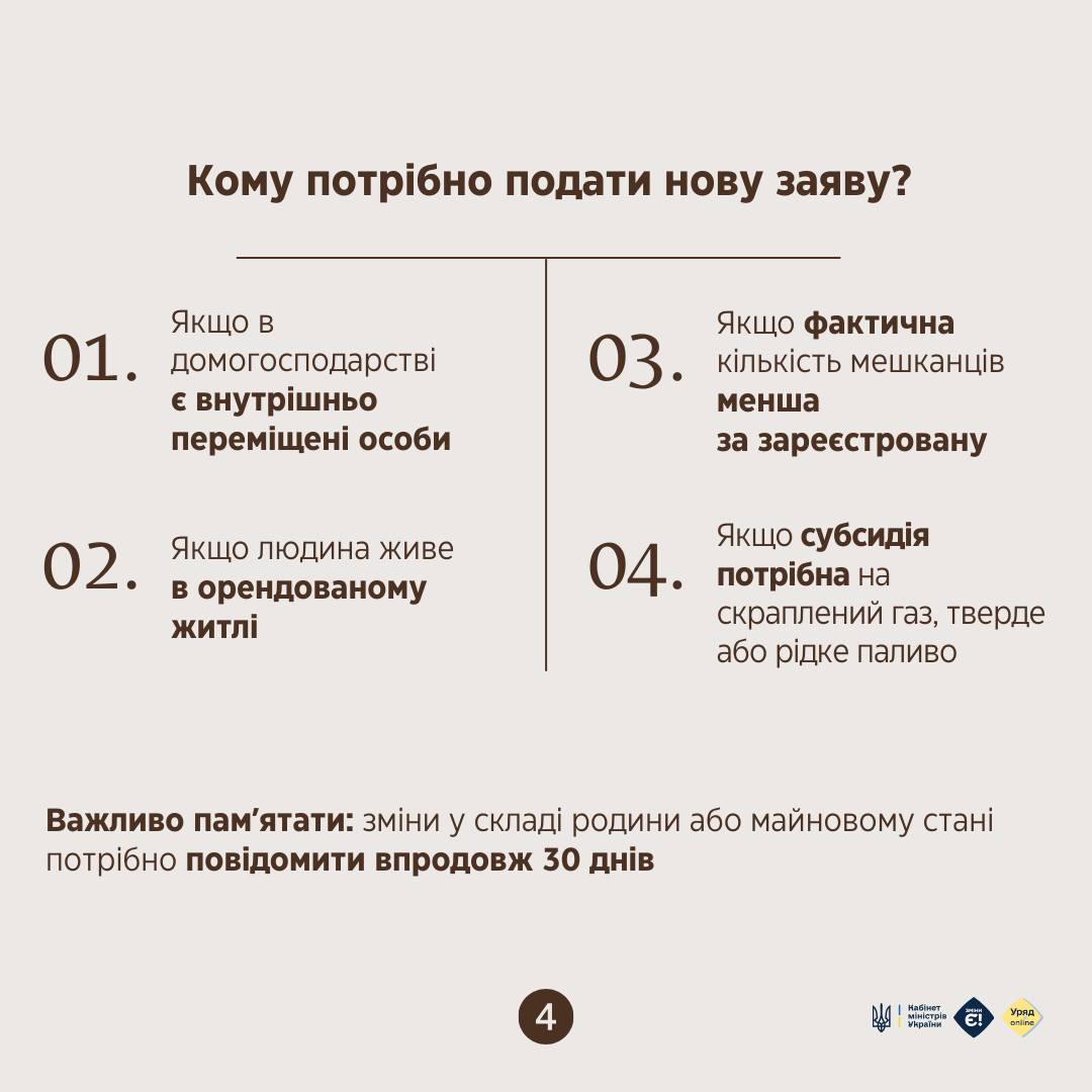 Важливо знати, що не всім одержувачам субсидії потрібно буде подавати нову заяву. Багато хто з них отримає продовження виплат автоматично. Проте, для деяких категорій громадян подання нової заяви є необхідним. Щоб з’ясувати, до якої категорії належите саме ви, рекомендуємо ознайомитися з інфографікою, представленою нижче. Вона містить чітку та зрозумілу інформацію щодо процедури переоформлення субсидій, критеріїв для автоматичного продовження та переліку необхідних документів для подання нової заяви.