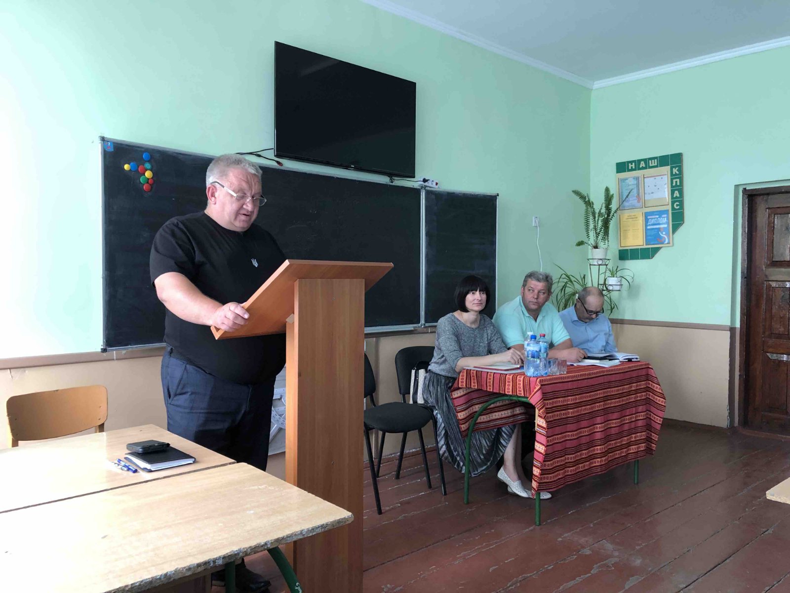Ратнівський селищний голова Віталій БІРУК, перебуваючи на звіті Анатолія ОМЕЛЬКА, директора Здомишельського ліцею Ратнівської селищної ради, акцентував увагу керівника та всіх присутніх на необхідності вибору оптимального режиму роботи закладу та пошуку можливостей для організації освітнього процесу в одну зміну.