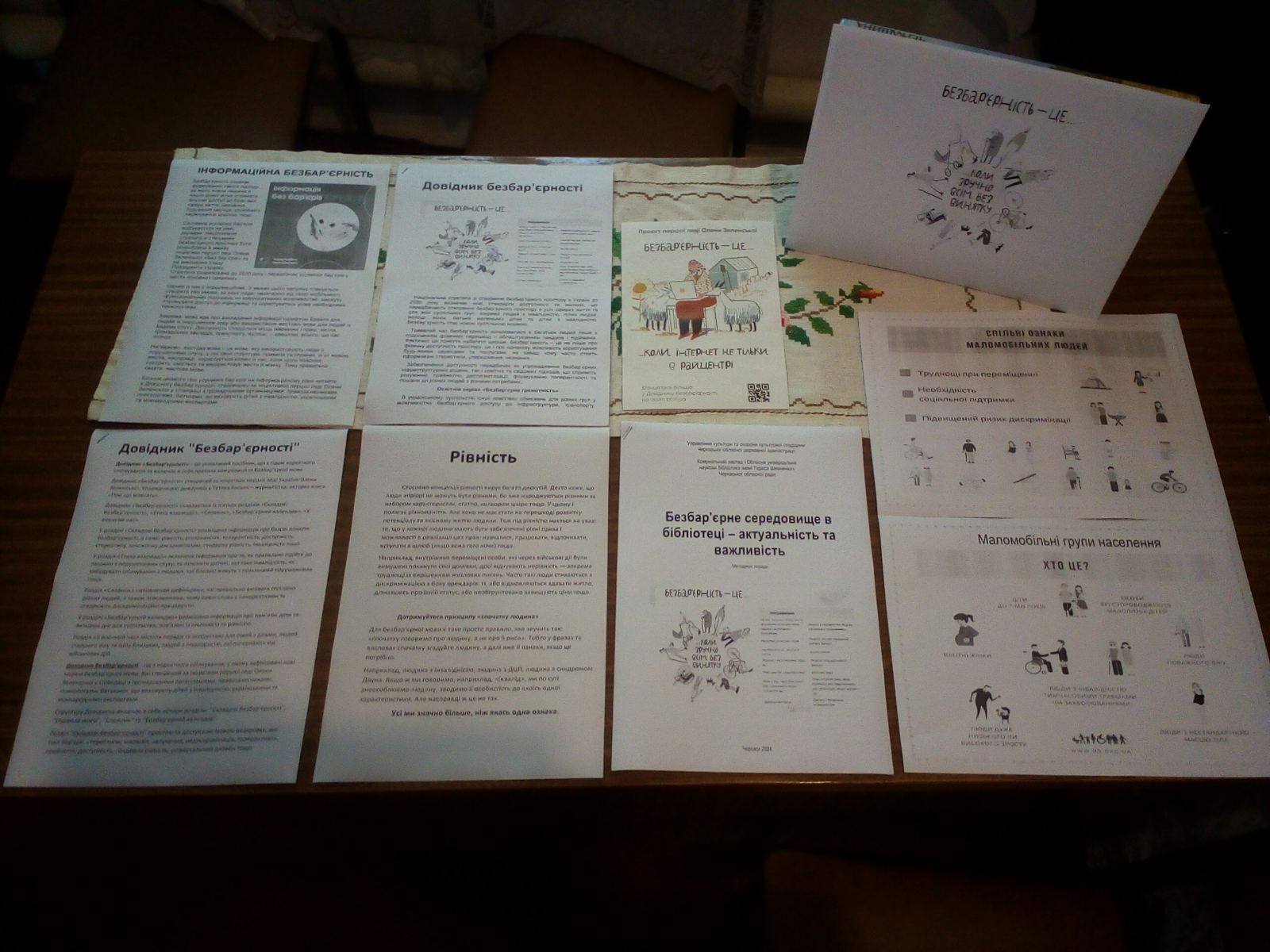 На сторінці Шевченківської сільської ради було опубліковано статтю, яка роз’яснювала важливість безбар’єрності. Публічна бібліотека ЦКД Шевченківської сільської ради разом зі своїми філіями в селах організували круглі столи для читачів. Під час цих зустрічей учасників знайомили з концепцією безбар’єрності та її основними напрямками. ЦКД запропонував широкому загалу перегляд освітнього серіалу «Безбар’єрна грамотність» і подальше обговорення «Довідника безбар’єрності».