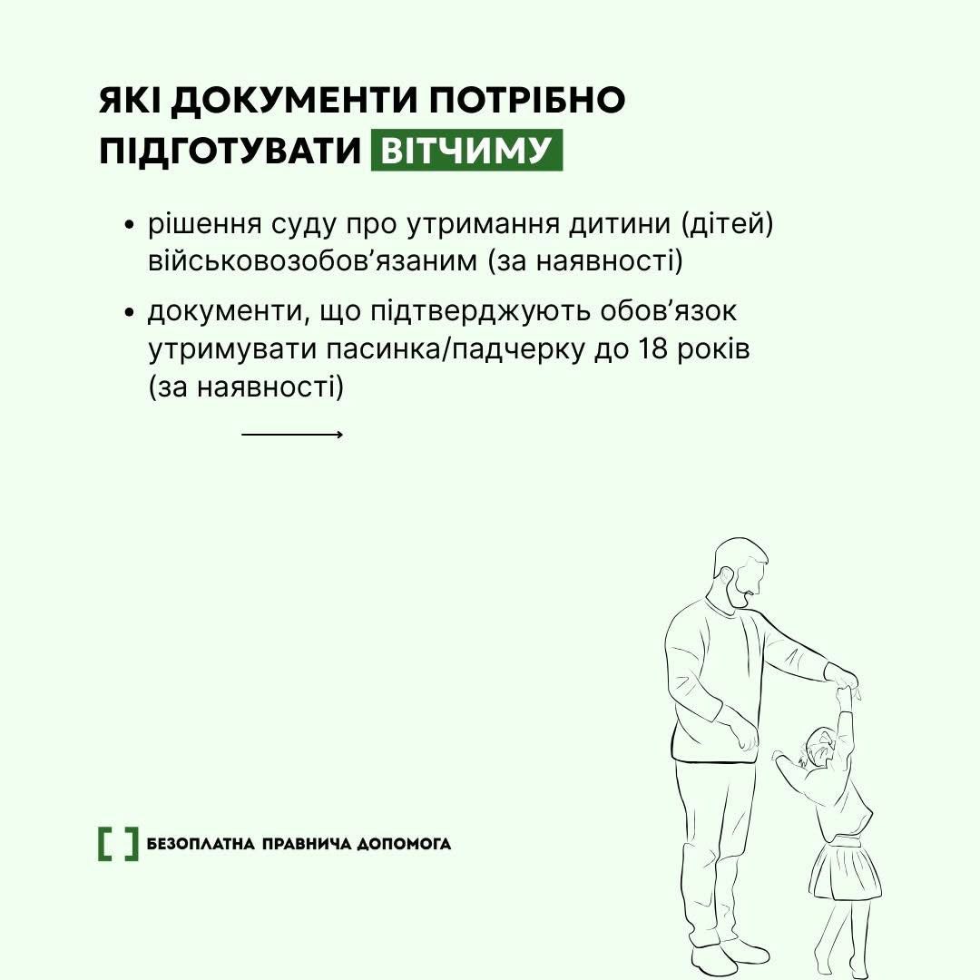 Для вітчима, окрім паспорта та свідоцтва про шлюб з матір’ю дітей, необхідні документи, що підтверджують факт утримання ним дітей, наприклад, рішення суду про встановлення опіки або піклування.