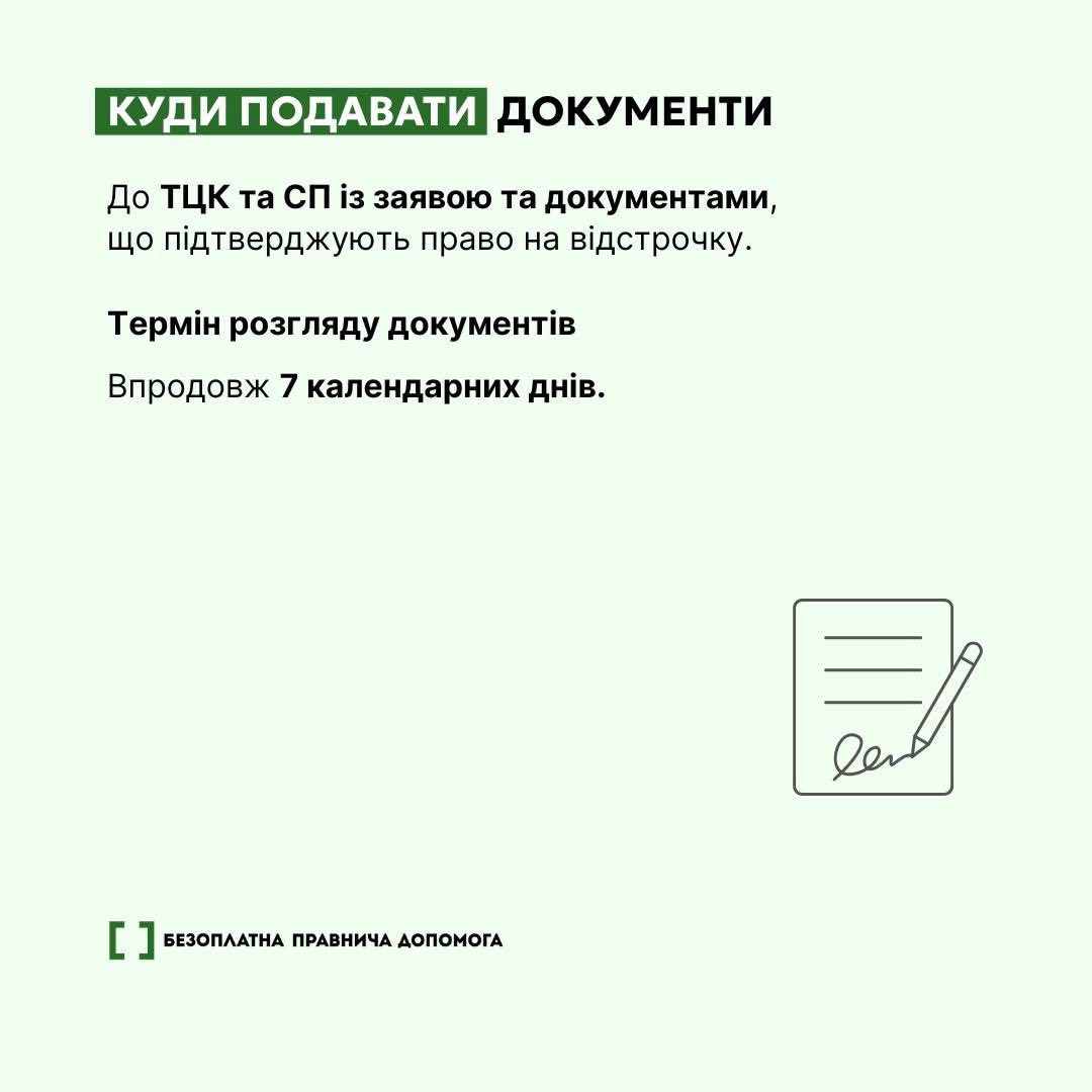 У випадку виникнення питань щодо отримання відстрочки від мобілізації, ви можете звернутися за безкоштовною правничою допомогою: