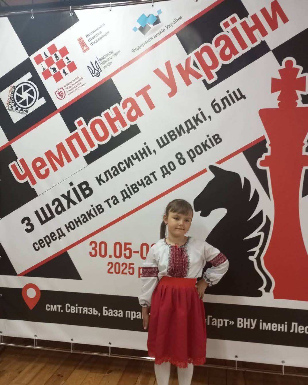 З великою радістю повідомляємо про блискучий успіх юної калуської шахістки на чемпіонаті України з шахів! З 30 травня у мальовничому селищі Світязь, що на Волині, триває чемпіонат України з шахів серед юнаків та дівчат віком до 8 років. Змагання охоплюють класичні шахи, швидку гру та бліц, надаючи юним талантам можливість проявити себе у різних форматах.