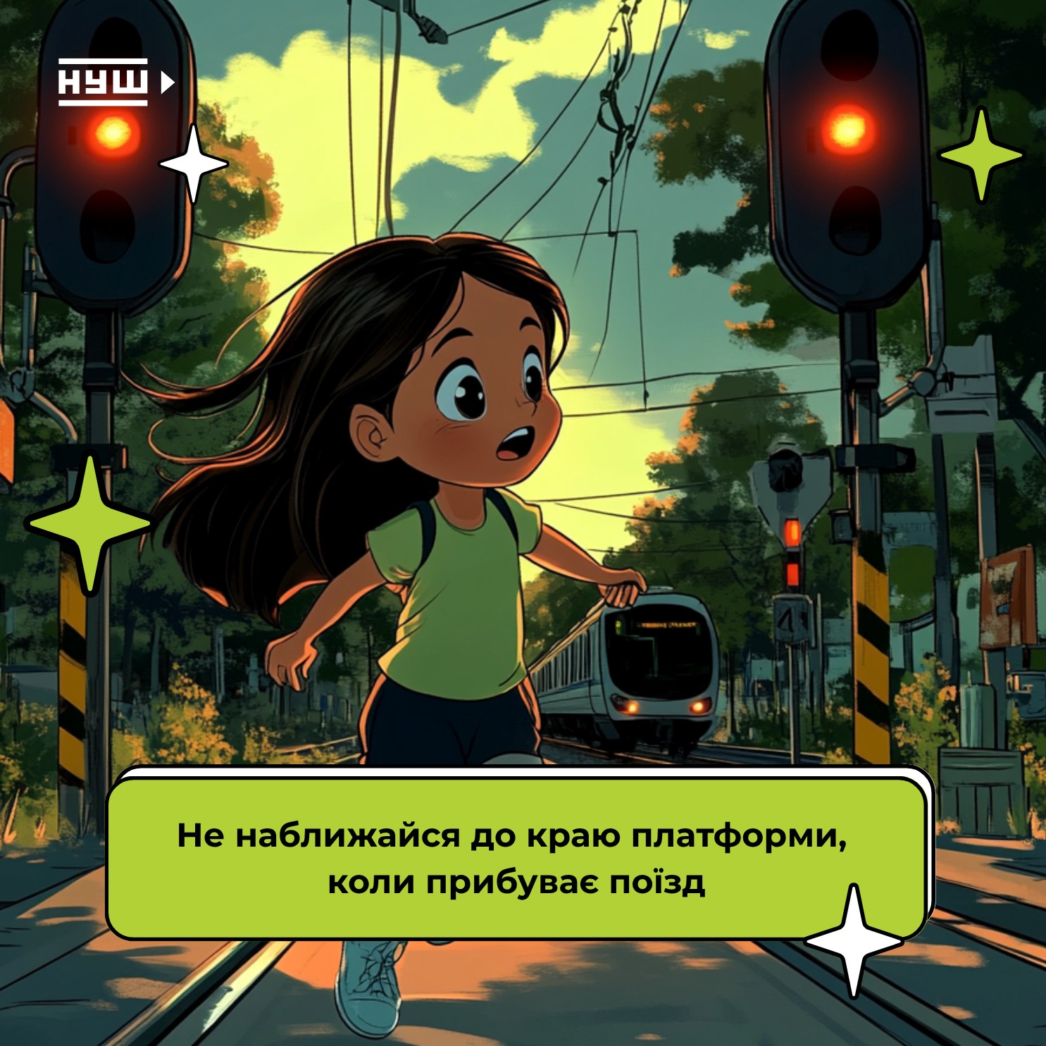 ▪ триматися подалі від краю платформи, коли прибуває поїзд.