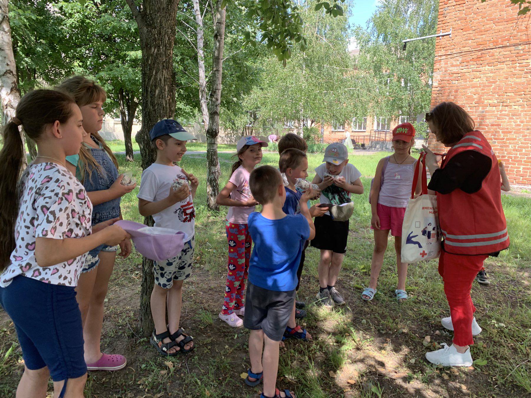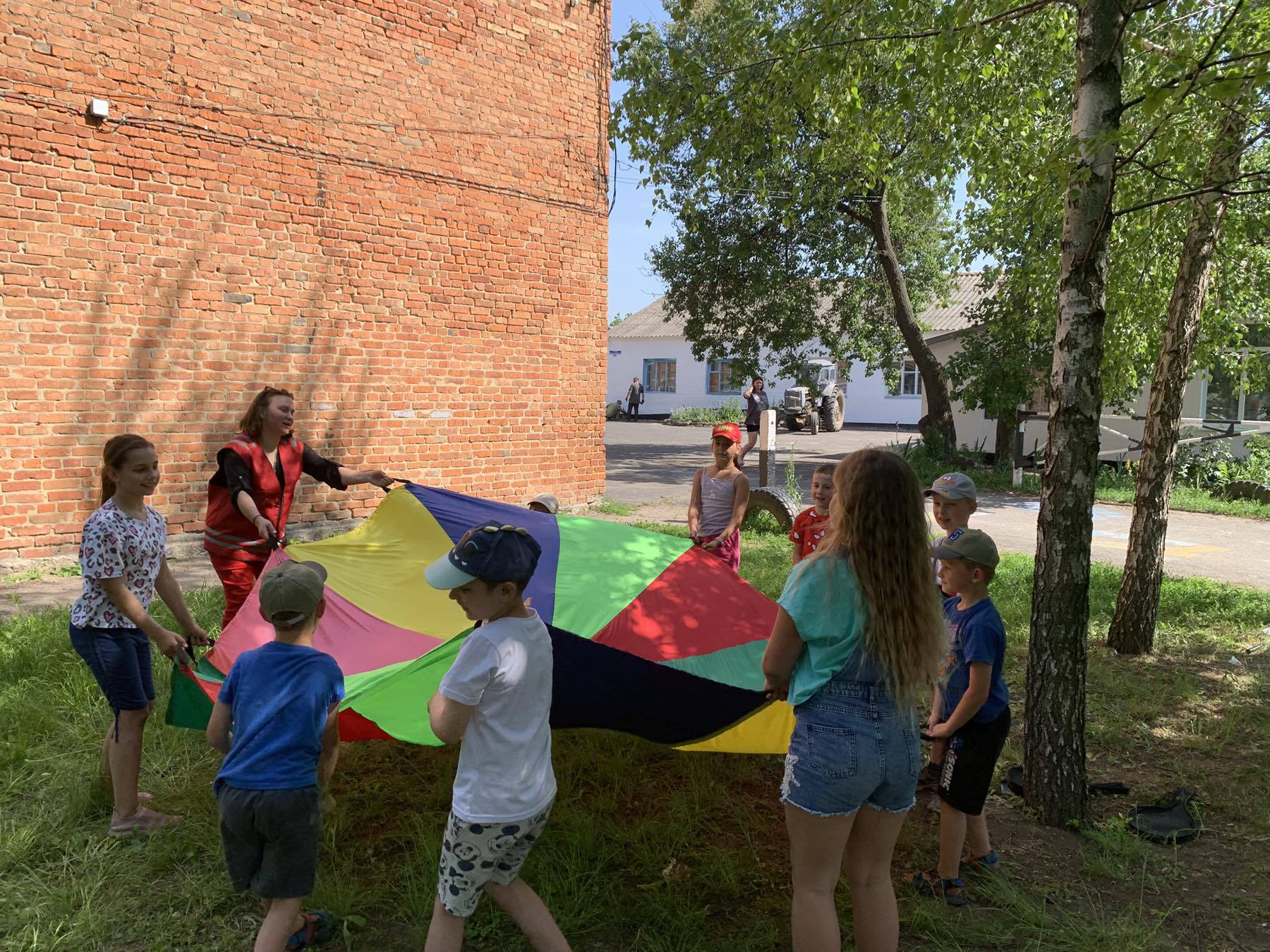 Саме з цією метою була організована прогулянка на свіжому повітрі з ігровою програмою, яка дуже сподобалася учасникам заходу з психічного здоров’я та психосоціальної підтримки. Волонтер Товариства Червоного Хреста України (ТЧХУ) Анжела Кравченко провела різноманітні вправи для заземлення та заспокоєння. Діти вчилися повільно пити воду, «літали» з парашутом, долаючи страх висоти, та малювали на асфальті, заземлюючись для заспокоєння. Такі заходи психосоціальної підтримки допомагають дітям впоратися зі стресом та тривогою, викликаними воєнними діями.