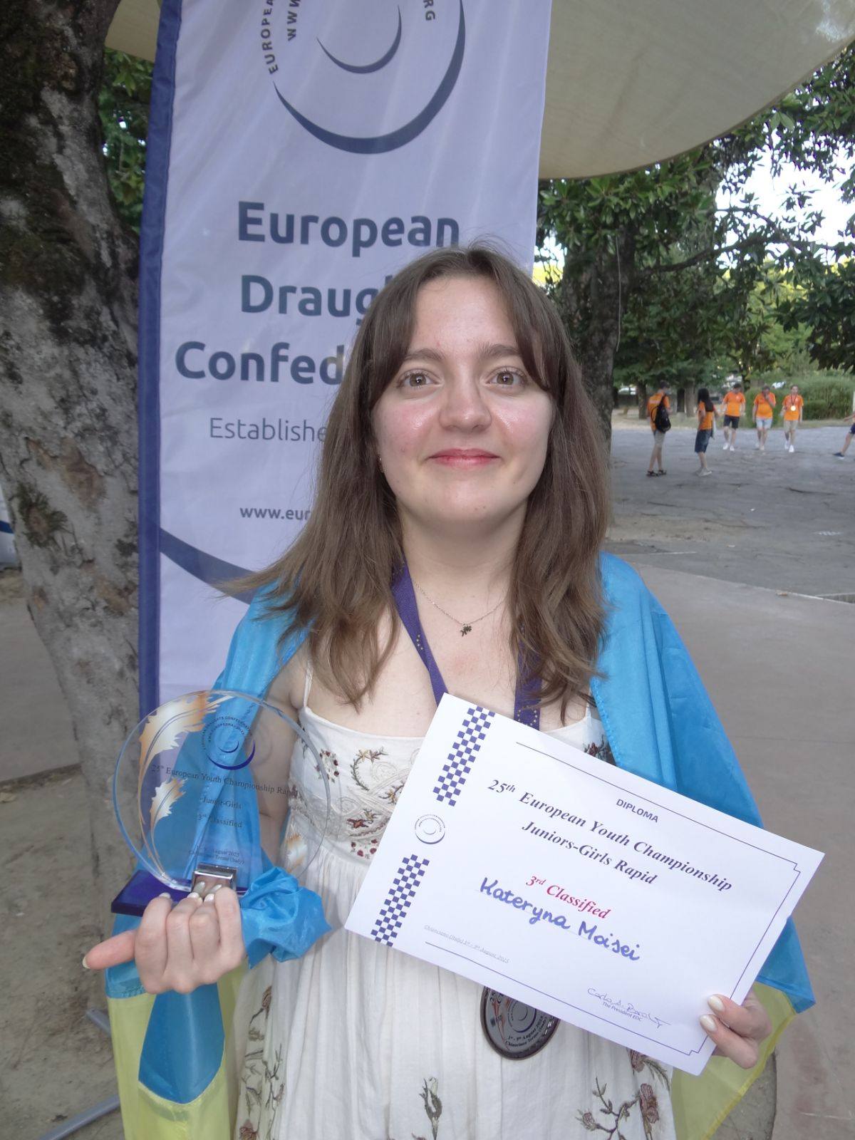 Катерина взяла участь в трьох програмах серед дівчат 19 років. І виступи були рівні, без зривів, трималась в лідерах, сама лідирувала. В класичній програмі заключний 8 тур приніс Катерині, яка до цього не знала поразки і йшла в лідерах, гіркоту поразки. В результаті – 6 місце. В швидкій грі зуміла втримати третю позицію. Катерина Мойсей – бронзовий призер чемпіонату Європи з шашок-100! Це – перша нагорода Катерини в чемпіонатах Європи. В заключному 9 турі блискавичної програми вийшло так, що на фініш 6 спортсменок вийшли з абсолютно однаковими очками. Уявіть, яка напружена ситуація, коли третина учасниць має реальні шанси стати чемпіонкою. За 30 років «спортивного стажу» вперше бачу такий «дружній» фініш. Серед претендентів і наша Катерина Мойсей. В легкій атлетиці в бігових дисциплінах використовують фототехніку, яка має роздільну здатність в тисячні долі секунди. В шашках використовують інші додаткові показники, які залежать від того, як суперники претендента зіграли з іншими суперниками. Оцей показник вивів Катерину Мойсей на 5 місце.