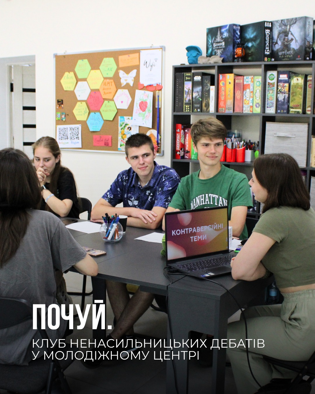 Клуб ненасильницьких дебатів «ПОЧУЙ» діє у молодіжному центрі «КOROБКА» у Трост…