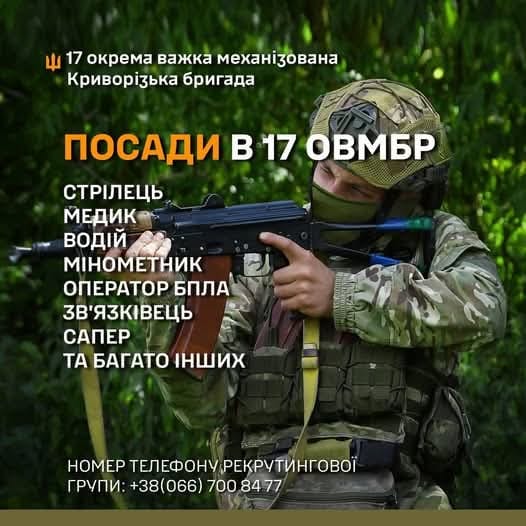 Для отримання детальнішої інформації про відкриті вакансії та умови служби, ви можете звернутися за телефоном: +380 66 700 8477. Також, актуальні пропозиції доступні для перегляду на офіційному сайті бригади: https://links.17ovmbr.army. Не зволікайте, адже ваша участь надзвичайно важлива для нашої спільної перемоги.