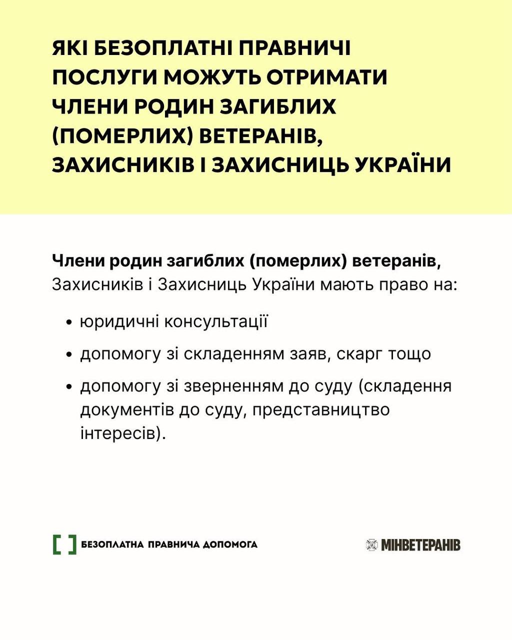 🪖Кожен ветеран і ветеранка, їхні рідні та сім’ї полеглих Захисників і Захисниць мають право на безоплатну правову допомогу від держави.