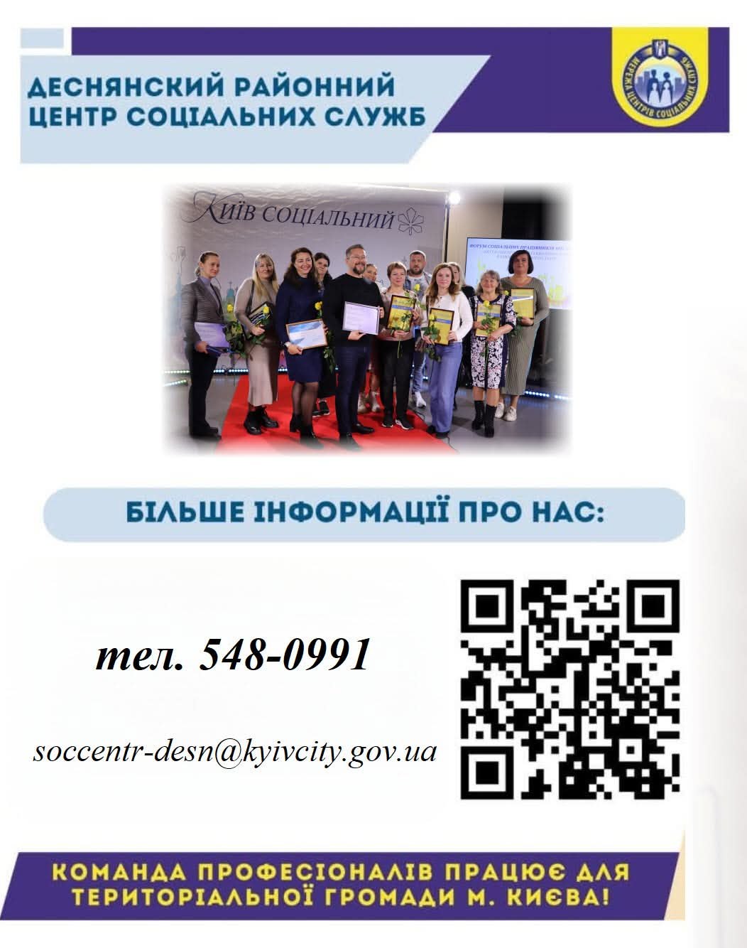 Кожен з нас може опинитися в життєвій ситуації, яка потребує кваліфікованої підтримки. Важливо знати, що існують спеціалізовані установи, де можна отримати допомогу та бути вислуханим. Деснянський районний у місті Києві центр соціальних служб – це саме таке місце, завжди готове підтримати найуразливіші верстви населення. Ми простягаємо руку допомоги: 🔸 родинам Захисників та родинам полеглих Героїв, які потребують особливої уваги та турботи; 🔸 родинам внутрішньо переміщених осіб, які шукають стабільності та допомоги в адаптації; 🔸 родинам, що виховують дітей з інвалідністю, надаючи їм ресурси та підтримку для розвитку; 🔸 людям, які переживають складні життєві обставини, пропонуючи шляхи виходу з кризових ситуацій. У нашому центрі ви маєте можливість отримати всебічну допомогу: отримати професійну пораду та емоційну підтримку від кваліфікованих психологів та досвідчених юристів; знайти ефективні методи допомоги у вихованні та гармонійному розвитку ваших дітей; долучитися до різноманітних цікавих занять та заходів, розроблених спеціально для дітей та молоді; поспілкуватися з людьми, які справді розуміють ваші труднощі та готові надати щиру підтримку; знайти внутрішні сили та мотивацію, щоб рухатися вперед, навіть у найважчі моменти життя. Деснянський центр соціальних служб – це місце, де на вас завжди чекає допомога та розуміння. Ми працюємо для вас, щоб кожен мешканець району відчував себе захищеним та підтриманим. 📍 Адреса: вулиця Червоної Калини, 15 📞 Телефон для зв’язку: 548-09-91 #твоя_соціальна_служба_поруч Деснянський районний в місті Києві центр соціальних служб