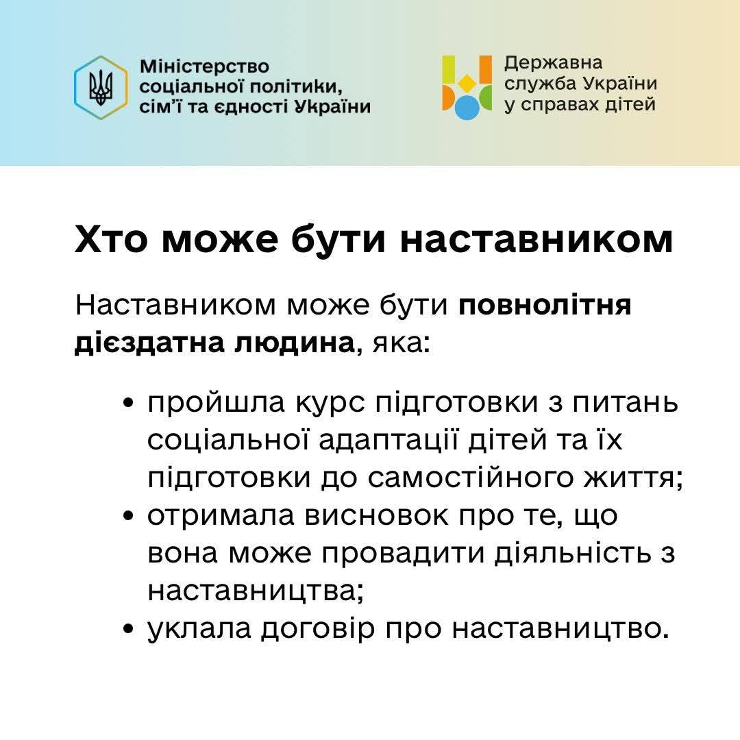 📍 Більше інформації про наставництво, а також про всі способи прийняти дитину в родину, — на єдиній державній платформі про усиновлення і сімейні форми виховання dity.gov.ua.