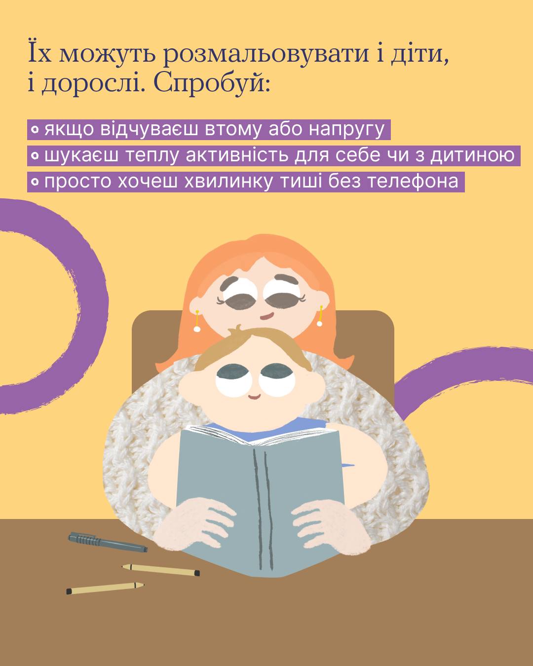 Спробуй згадати, як це, адже через форму, лінію і колір можна непогано розслабитися. А розмальовки — це простий та ефективний спосіб повернутися до себе 🤝