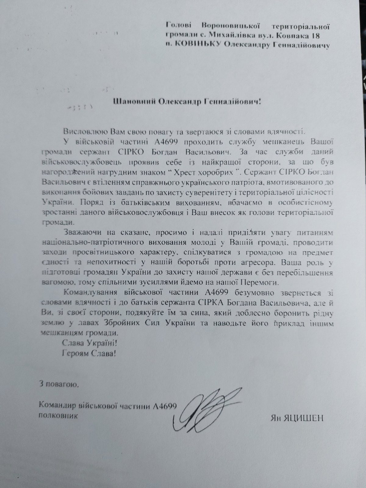 Коли відданість, мужність і професіоналізм об’єднуються в одній особі, вона стає справжнім прикладом для наслідування. Саме таким є наш земляк, Сірко Богдан Васильович, житель села Михайлівка, народжений 14.08.1997 року. За його віддану службу та виявлену хоробрість, він був заслужено нагороджений почесним нагрудним знаком «Хрест хоробрих».
