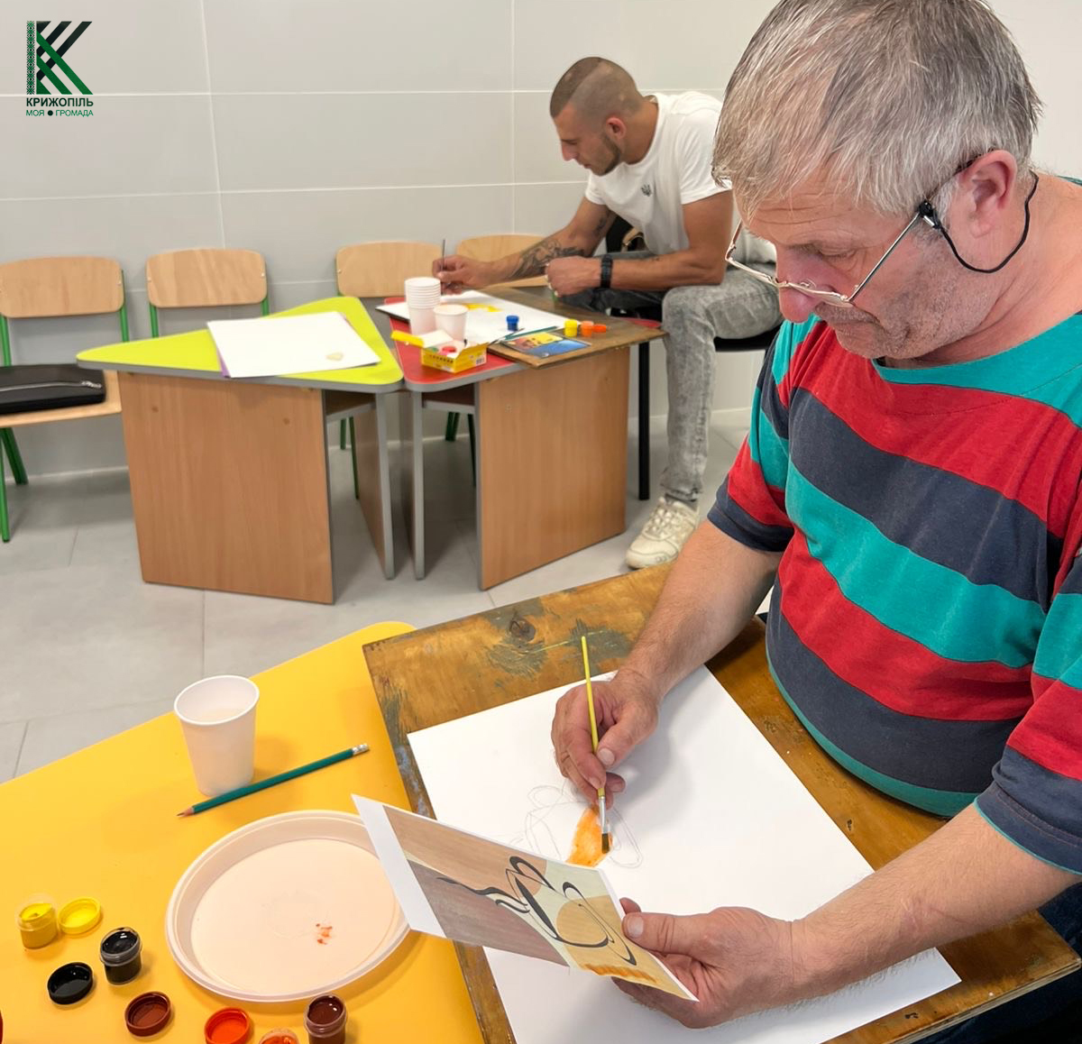 Завідувач відділення Дмитро Масловський, фахівець із супроводу ветеранів Тетяна Петрова та викладачка образотворчого мистецтва Ольга Оніщенко об’єднали зусилля, щоб створити теплий, безпечний простір — де можна бути справжнім, не сильним, не мовчазним, не зібраним… а просто живим.