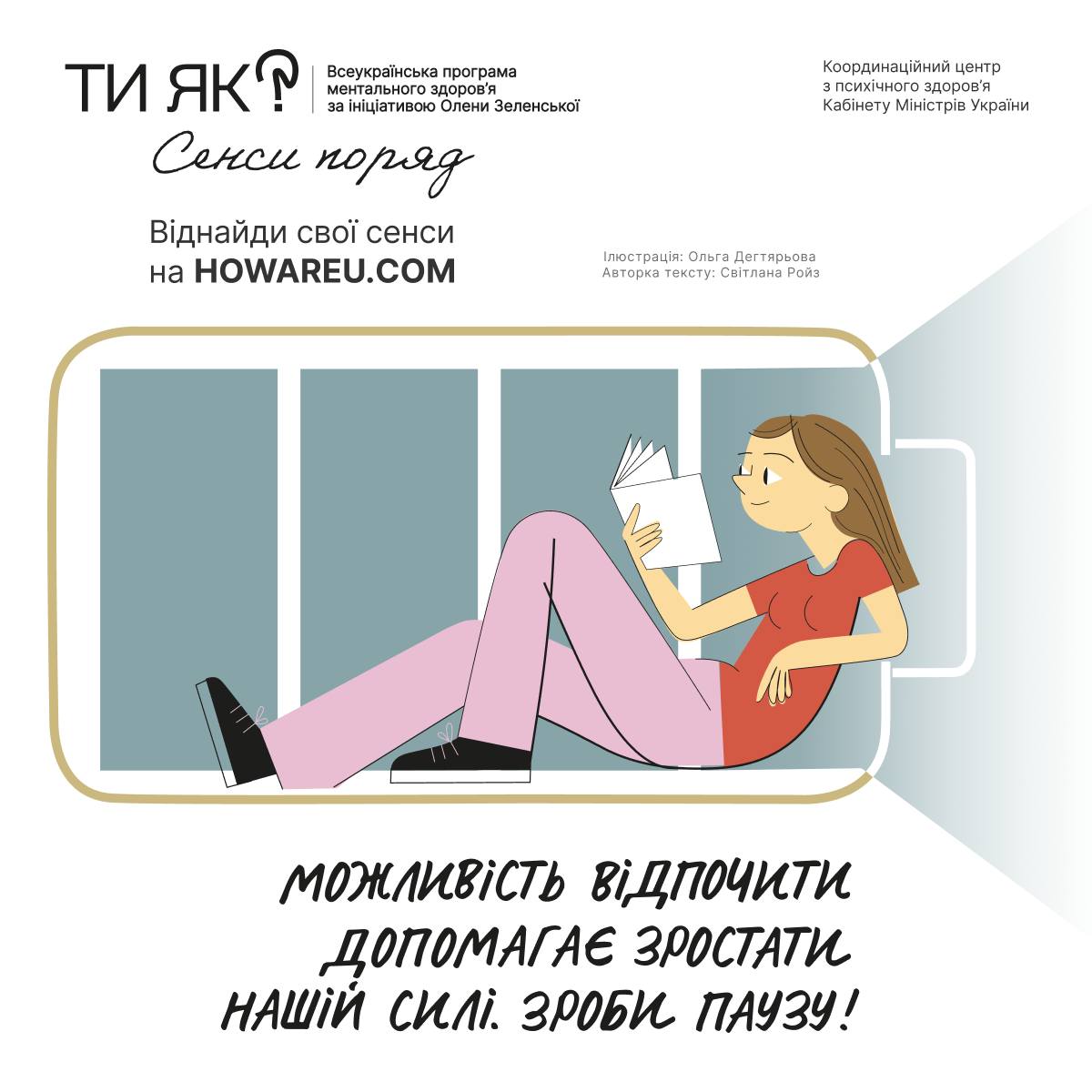 Роздивитися вже існуючі теплі підтримуючі послання, пройти шлях від роздумів до дії та ідентифікувати власні сенси допоможе серія ілюстрацій, створених Ольгою Дегтярьовою спеціально для «СенсоТека. Ти як?» – https://howareu.com/materials/sensoteka-ty-iak