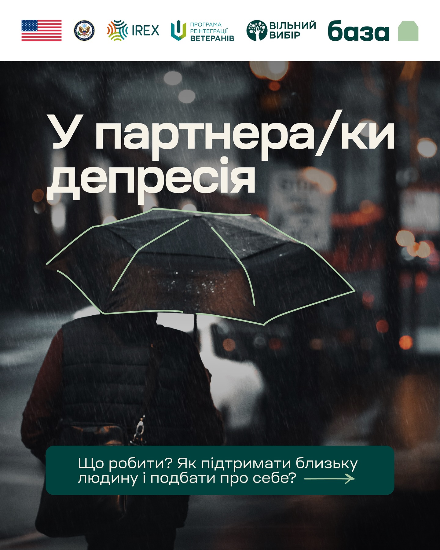Коли людина поруч переживає депресію, це стає серйозним випробуванням як для неї самої, так і для її близьких 🫂. Вкрай важливо усвідомлювати, що депресія — це не вияв лінощів, тимчасовий поганий настрій чи стан, який можна просто «перетерпіти». Це серйозне медичне захворювання, яке потребує професійної уваги. Без своєчасної та кваліфікованої допомоги депресія може поглиблюватися, негативно впливаючи на всі сфери життя людини, від роботи до особистих стосунків. Звернення до психотерапевта або лікаря є критично важливим кроком на шляху до одужання та відновлення повноцінного життя. Пам’ятайте, що ви не самотні у цій боротьбі. Існують ресурси, що готові надати підтримку. Дізнатися більше про ментальне здоров’я та шляхи подолання депресії можна у застосунку “База”. Завантажити його можна за посиланням у шапці профілю. Особливу увагу слід приділити підтримці тих, хто захищає нашу країну. Надається безоплатна психологічна підтримка захисникам та захисницям, а також їхнім родинам через організацію @vilnyi_vybir. Ця ініціатива є частиною програми реабілітації та реінтеграції ветеранів, яку реалізує IREX за підтримки Державного департаменту США. Ми дякуємо партнерам за можливість надавати таку важливу допомогу. Зміст цього матеріалу є виключною відповідальністю IREX та “Вільний Вибір” і не обов’язково відображає погляди Державного департаменту США. Подбайте про своє ментальне здоров’я та здоров’я своїх близьких. Професійна допомога доступна, і перший крок — це визнати проблему та звернутися за підтримкою. Ваше самопочуття є пріоритетом.