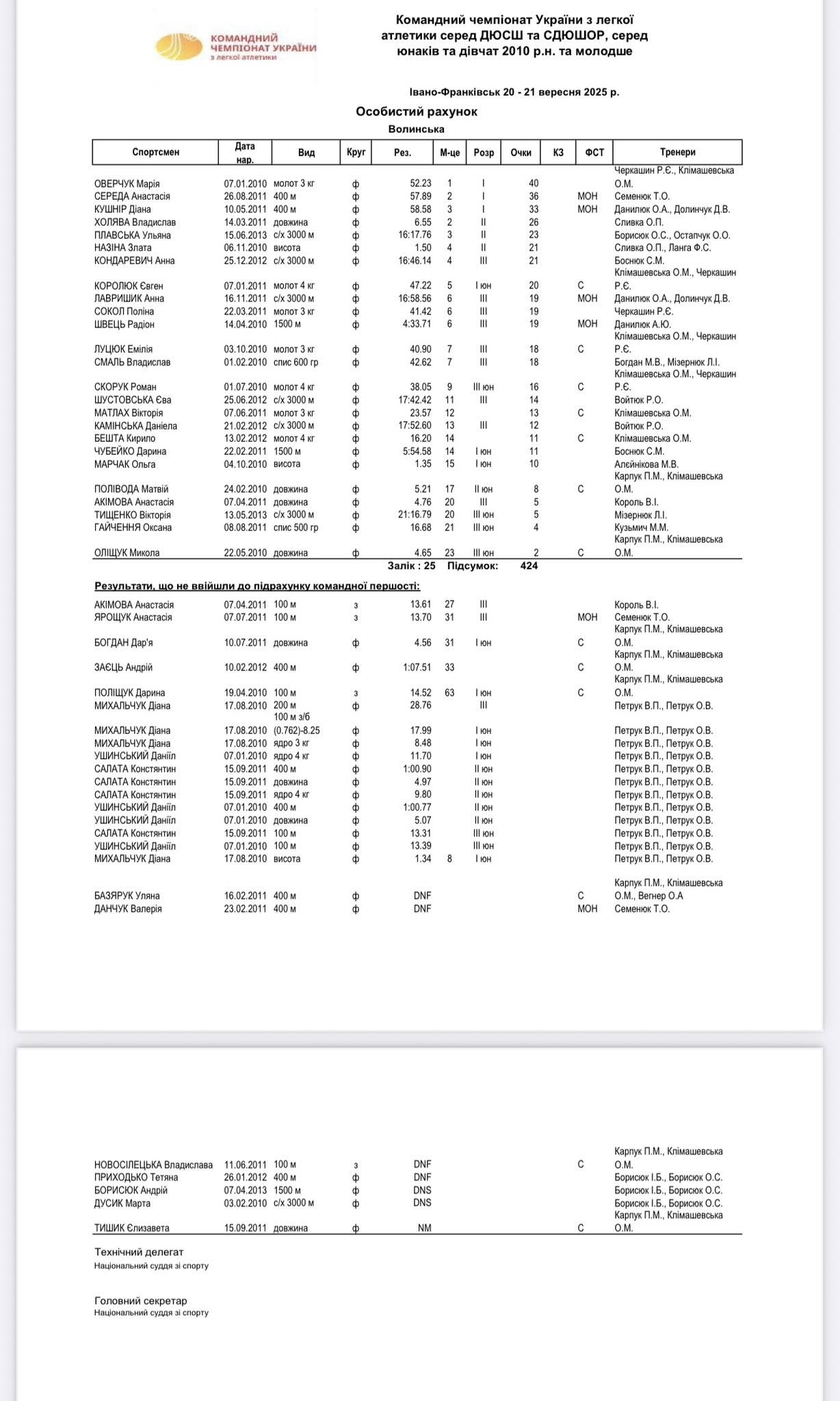 💙💛 Командний чемпіонат України з легкої атлетики серед ДЮСШ та СДЮШОР серед юнаків і дівчат 2010 р.н. та молодших пройшов у форматі справжнього свята швидкості, сили та неймовірних емоцій! 20–21 вересня 2025 року місто Івано-Франківськ зібрало найкращих юних легкоатлетів з усієї України. Змагання мали на меті визначити найсильніших та подарувати незабутні миті боротьби за медалі. 🏃♀️🏃♂️✨