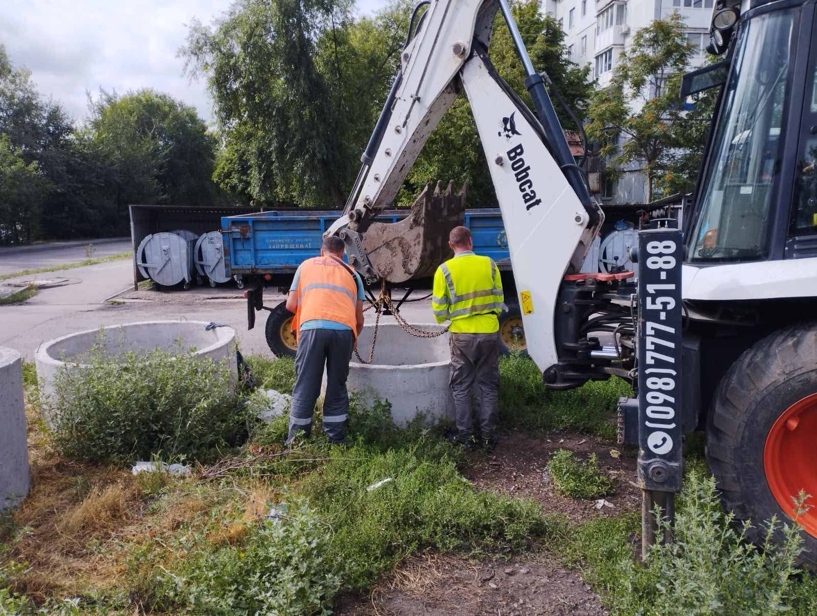 вул. Гетьманська, 42–44 — змонтовано новий оглядовий колодязь, оброблено мастикою, засипано. Виконано врізку в поліетиленову трубу Ø160 мм (без підключення); роботи виконано вручну та екскаватором