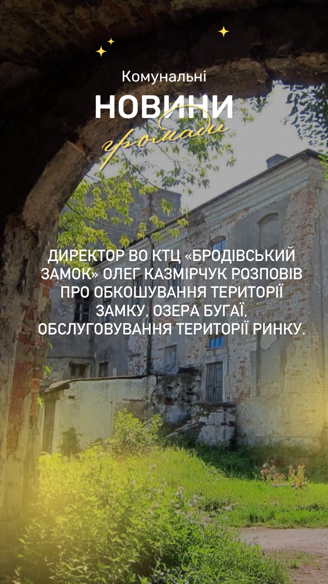 🔵 **ВО КТЦ «Бродівський замок»:** Директор Олег Казмірчук звітував про обкошування території замку та озера Бугаї, а також обслуговування території ринку. Ці роботи сприяють підтримці естетичного вигляду об’єктів та забезпеченню належних умов для відвідувачів та мешканців громади.