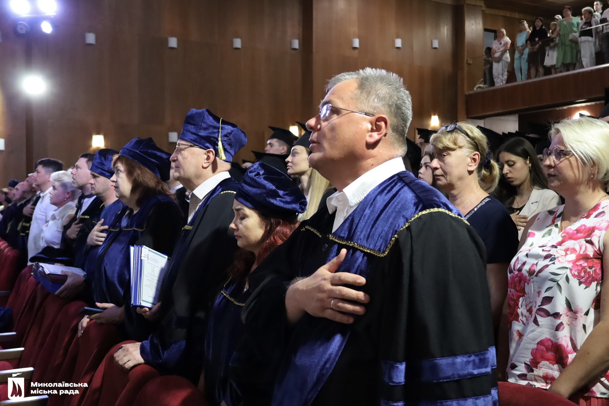 🎓Конвокація 2025: Олександр Сєнкевич привітав випускників “Могилянки” із завершенням навчанняУ четвер, 3 липня, у Миколаєві відбулась урочиста конвокація бакалаврів та магістрів усіх спеціальностей Чорноморського національного університету імені Петра Могили. Це знакова подія, що традиційно збирає не лише випускників та їхні родини, а й представників влади та громадськості, підкреслюючи важливість освіти у житті міста та країни. Цьогорічна конвокація Могилянки стала символом стійкості та незламності молоді, яка попри всі виклики продовжує здобувати знання та будувати своє майбутнє.🤝Привітати випускників Могилянки з таким омріяним днем завітали Миколаївський міський голова Олександр Сєнкевич, начальник Миколаївської обласної військової адміністрації Віталій Кім, представники керівництва міста та області, батьки та рідні студентів, а також військові. Присутність таких поважних гостей підкреслила високий статус заходу та велике значення молодих фахівців для розвитку регіону та всієї України. Ця подія є свідченням того, що навіть у найскладніші часи освіта залишається пріоритетом.Урочисту церемонію вручення дипломів відкрив ректор університету Леонід Клименко. У своїй промові він звернувся до молодих фахівців, наголошуючи на унікальності їхнього вишу.💬“Завжди пам’ятайте, що наш університет є особливим і на вас лежить відповідальність за його честь. Ви повинні робити все на користь нашої держави, щоб вас цінували за ваші знання. Не бійтесь рухатися вперед. Майте амбіції, ставте перед собою високу мету та досягайте її”, – натхненно сказав ректор, підкреслюючи роль кожного випускника ЧНУ імені Петра Могили у формуванні майбутнього України. Його слова прозвучали як настанова до дії та нагадування про громадянський обов’язок.Особливою частиною церемонії стала подяка від бійців 56 окремої мотопіхотної Маріупольської бригади. Вони висловили щиру вдячність університету за виховання патріотичної та освіченої молоді. На знак пошани та визнання, бійці вручили ректору Леоніду Клименку та всьому викладацькому складу прапор бригади та відзнаку. Цей зворушливий момент символізував єдність військових та освітньої спільноти у прагненні до перемоги та розбудови сильної держави.Миколаївський міський голова Олександр Сєнкевич, який сам є випускником факультету комп’ютерних наук ЧНУ імені Петра Могили, традиційно вручив дипломи студентам свого рідного факультету. У своєму вітальному слові мер звернувся до молоді, закликаючи їх щоденно працювати над собою та сприяти позитивним змінам у нашій державі.💬“Вітаю вас зі святом, шановні випускники! Гарні новини: ви закінчили дуже важливий етап у вашому житті і здобули нових друзів, можливо, навіть на все життя. Погані новини: вас зустрічає реальне життя. Кожен з вас може досягти успіхів – це не якась спеціальна робота. Це – просто робота кожного дня над собою. Сьогодні у вашому житті починається новий етап. Бажаю вам усім удачі. Змінюйте на краще себе, нашу державу, приводьте її своєю працею до перемоги і до найкращих нових горизонтів”, – привітав випускників Могилянки Олександр Сєнкевич, підкреслюючи важливість саморозвитку та активної громадянської позиції. Церемонія завершилася традиційним підкиданням шапочок у повітря, що символізує відкриття нових можливост