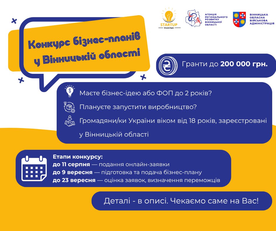 Конкурс бізнес-планів для започаткування та ведення бізнесу у Вінницькій област…