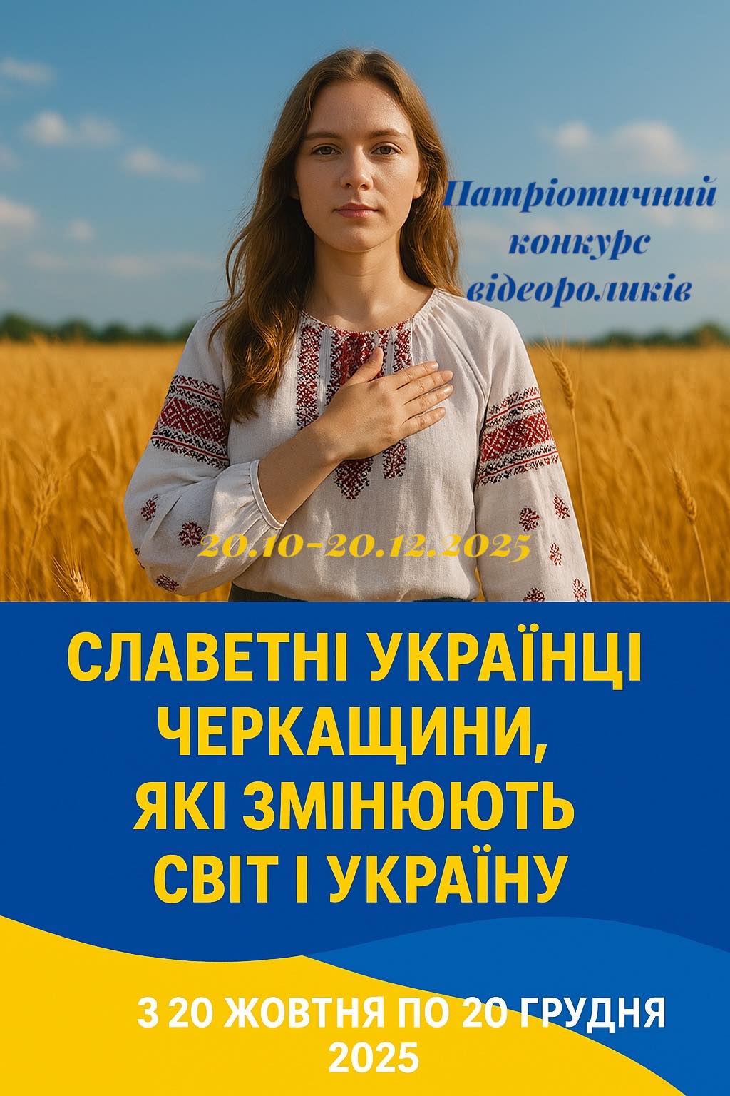 Хто є героями нашого часу на Черкащині? Це можуть бути ваші вчителі, сусіди, волонтери, митці чи науковці – люди, чиї досягнення надихають і змінюють світ навколо нас. Відкрийте для себе та розкажіть про них мовою відео в рамках обласного патріотичного конкурсу відеороликів учнівської молоді «Славетні українці Черкащини, які змінюють світ і Україну» 💙💛.