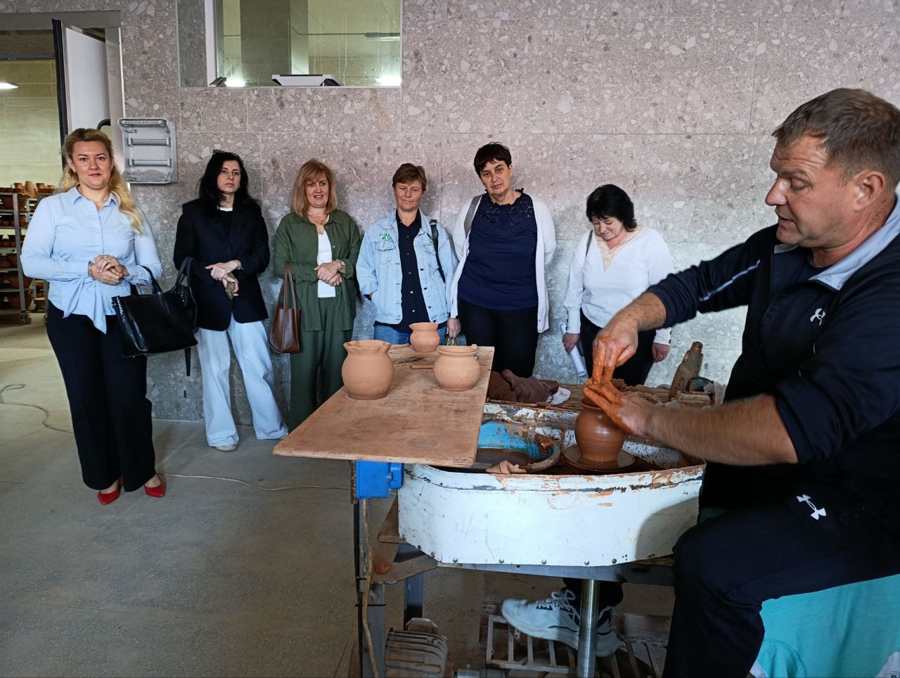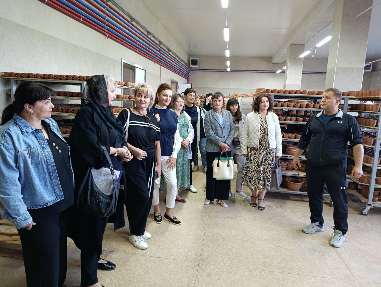 Особливістю засідання стала його практична частина, спрямована на удосконалення підприємницької компетентності педагогів. Учасники відвідали ТОВ «Еко-Гермес» — підприємство, що спеціалізується на виготовленні господарських і декоративних керамічних виробів. Керівник підприємства Ігор Шельгорін, досвідчений кераміст та один з найкращих фахівців області, поділився своїми знаннями про особливості гончарної справи та локальні ремісничі традиції. Особливу увагу він приділив Смотрицькому розпису та Адамівській кераміці, підкресливши їхню цінність як унікальних носіїв культурного коду Поділля. Цей досвід став чудовим прикладом поєднання творчості, підприємництва та збереження культурної спадщини, що може бути корисним для освітньої сфери.