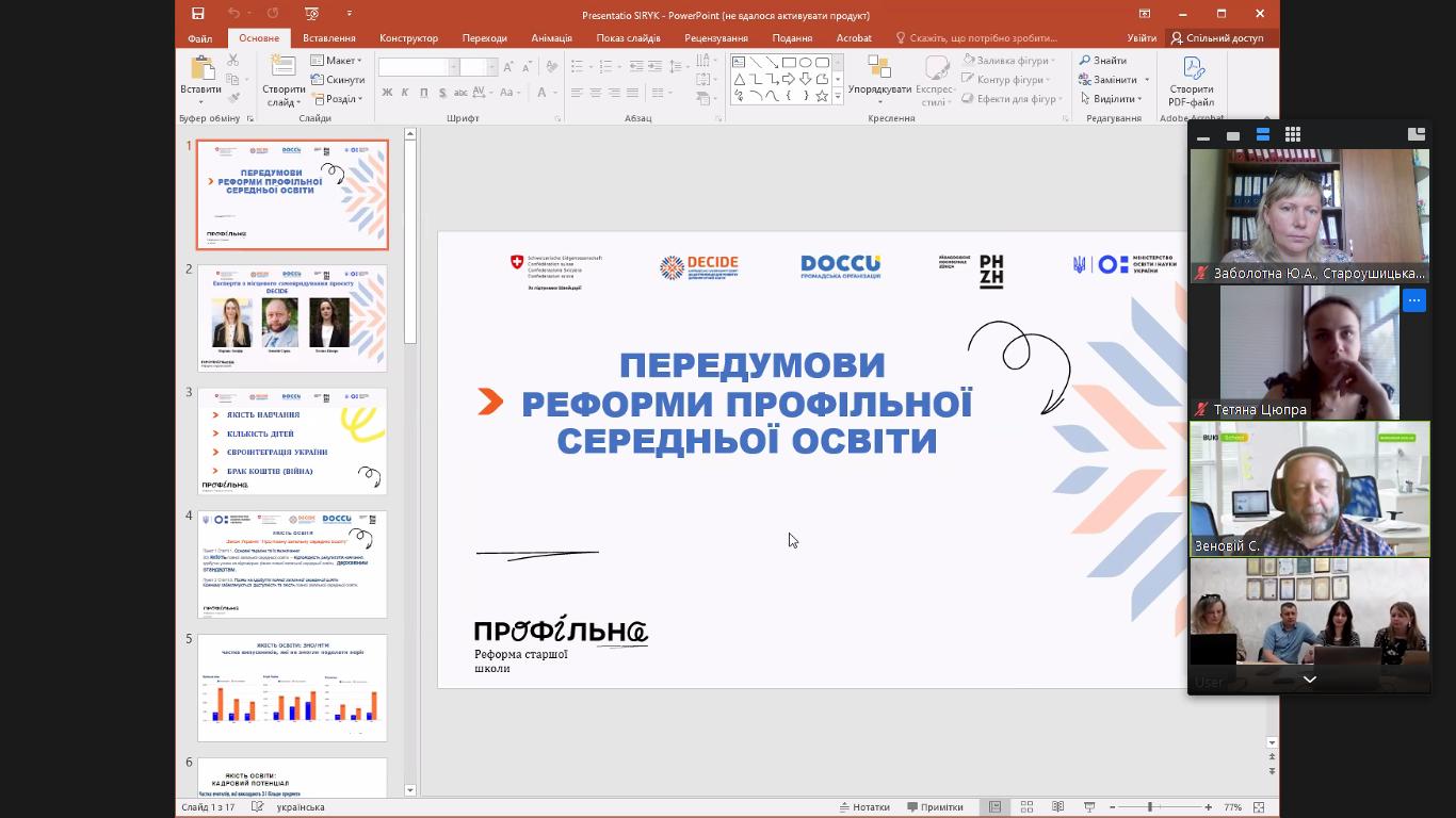 📌15 липня відбулася онлайн-консультація представників Староушицької та Китайгородської громад із представниками експертної групи швейцарсько-українського проєкту «Децентралізація для розвитку демократичної освіти» щодо створення академічного ліцею.