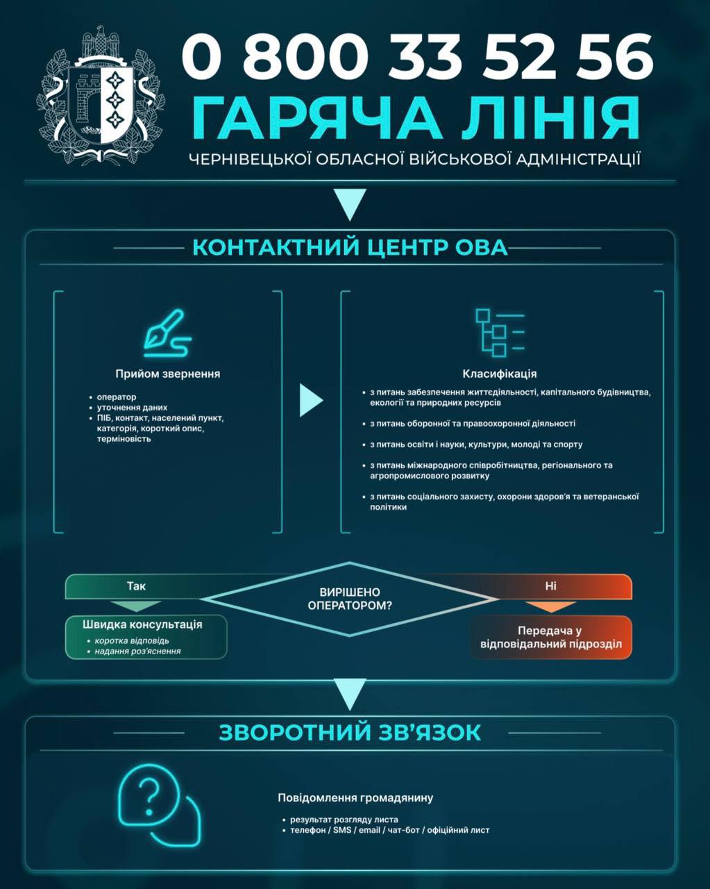 Контактний центр Чернівецької ОВА: оперативне реагування на звернення та підтримка у складних і кризових ситуаціях