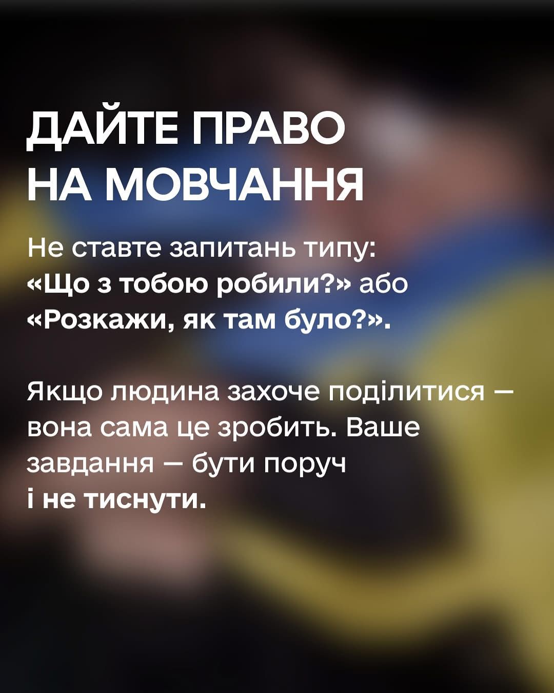 Повернення з полону – це лише початок довгого шляху реабілітації, лікування, адаптації та відновлення до вільного життя для наших Захисників і Захисниць. Ми щиро радіємо кожному воїну, який повертається додому, кожному їхньому дзвінку рідним. Важливо пам’ятати, як правильно підтримувати тих, хто щойно звільнився з полону, адже їм потрібна особлива увага та підтримка.