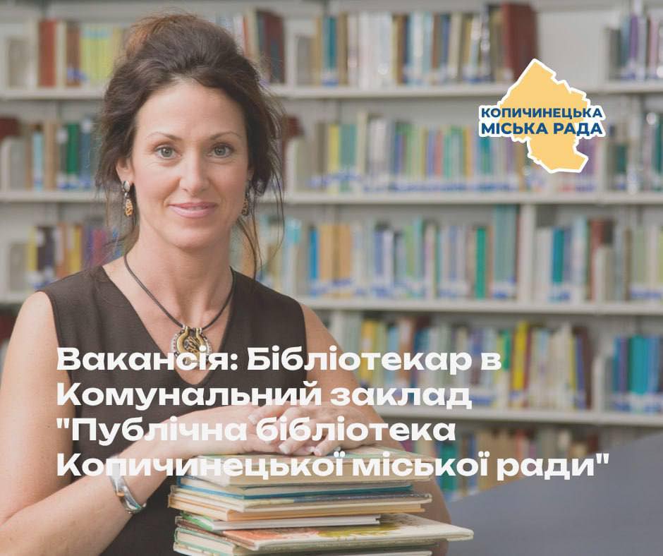 ✨Копичинецька публічна бібліотека оголошує про відкриття вакансії! Ми шукаємо енергійну та відповідальну людину, яка приєднається до нашої команди для розвитку культурного життя громади. Якщо ви любите спілкування з людьми та прагнете організовувати різноманітні заходи, ця робота в бібліотеці саме для вас!