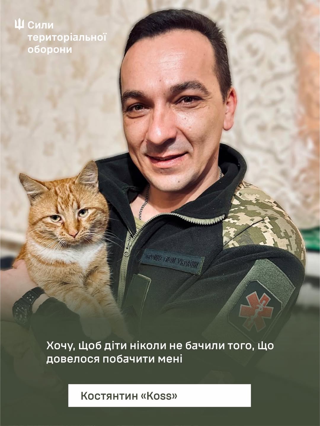 Костянтин «Koss» — військовий медик 146-го батальйону 116-ї окремої бригади Сил ТрО ЗСУ. До бригади долучився з перших днів повномасштабного вторгнення.