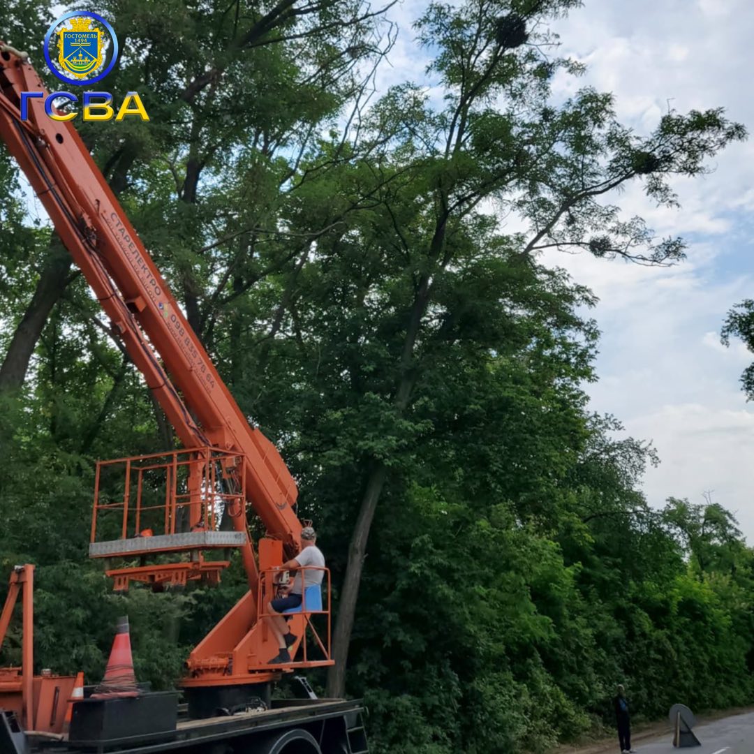 У селищі Гостомель працівники комунального підприємства провели роботи з кронування дерев по вулиці Леонтовича.