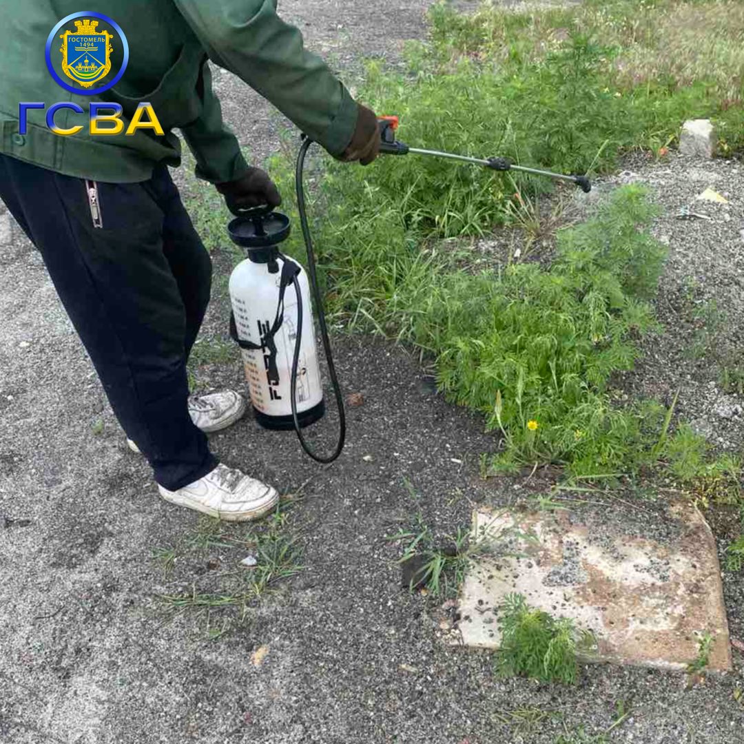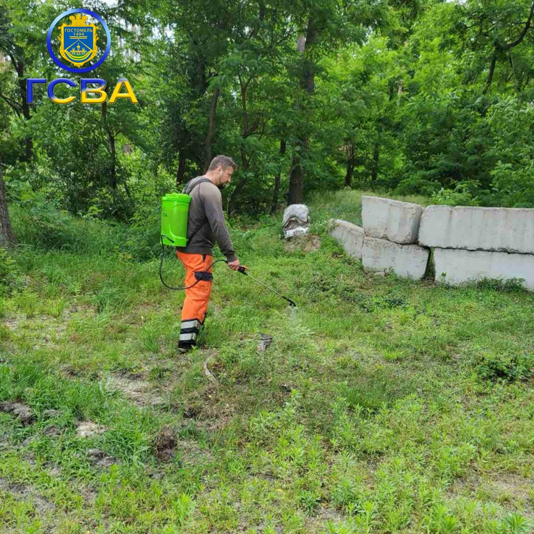 КП «Благозеленбуд» продовжує сезонні роботи зі знезараження алергенних рослин у Гостомельській громаді.