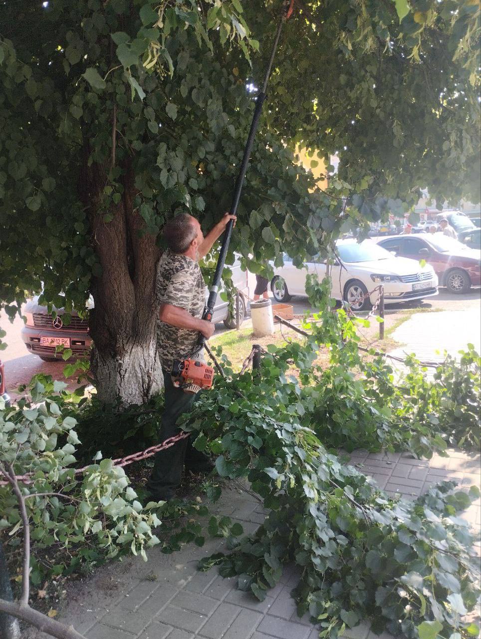 ✔️зрізали гілля, що нависало над тротуарами по вул.Соборна, Я.Острозького, Злагоди