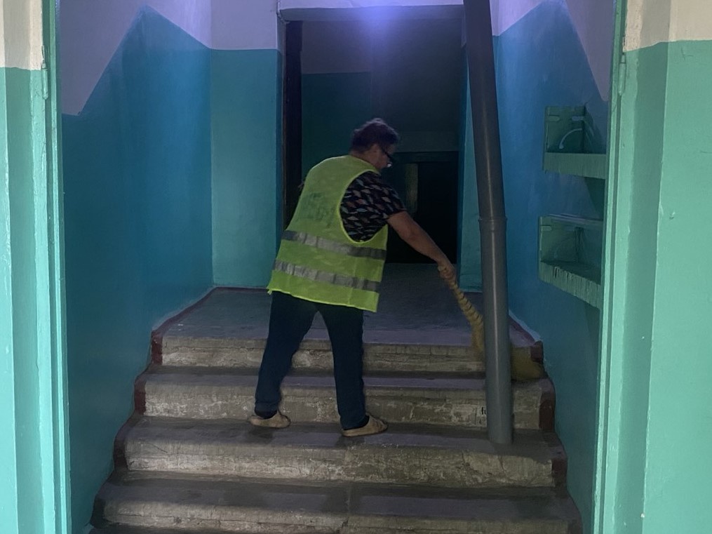 15 липня працівники підприємства виконували планові роботи з прибирання та догляду за під’їздами й прибудинковими територіями житлових будинків.