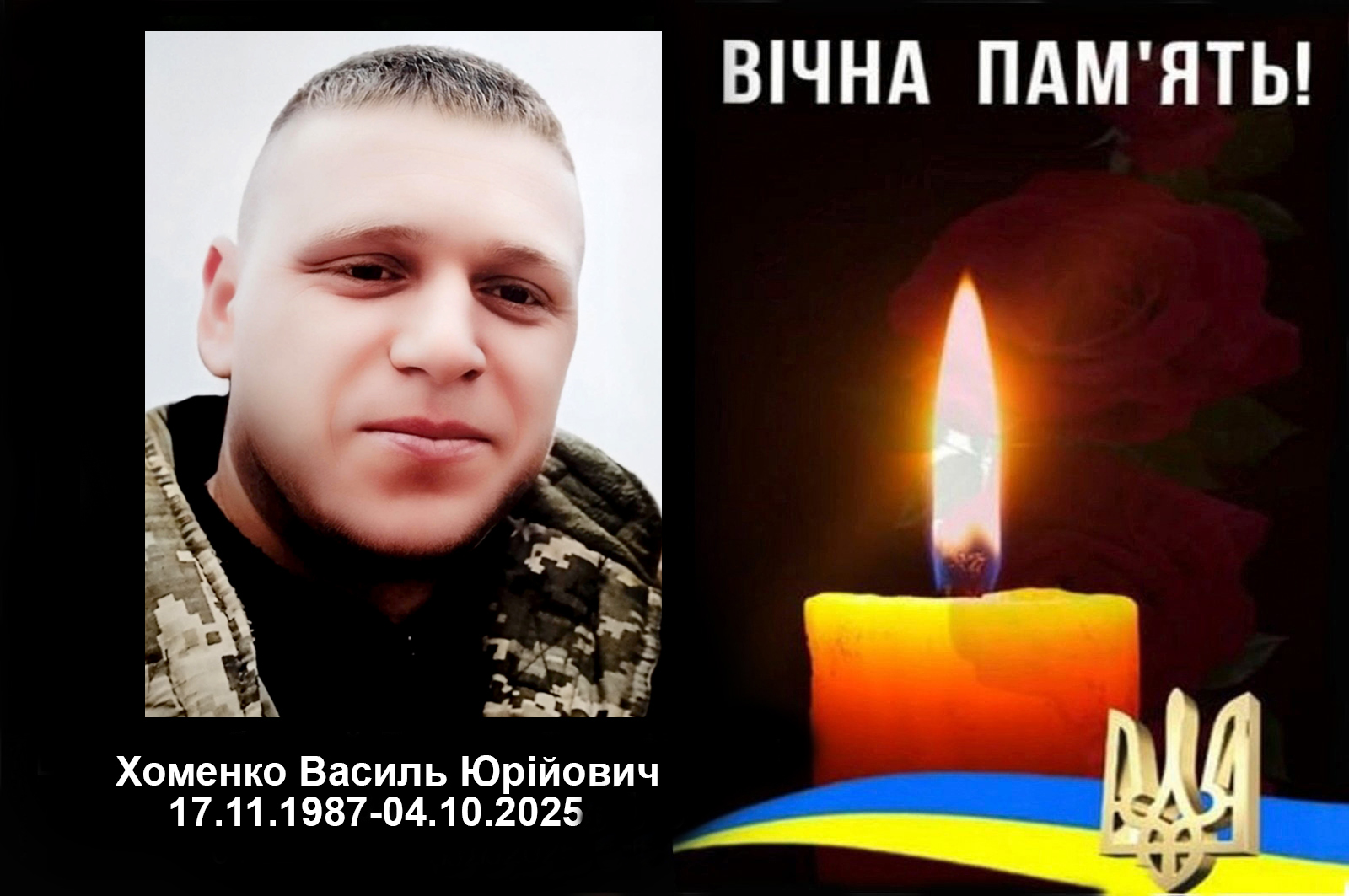 4 жовтня 2025 року перестало битися серце нашого земляка, сержанта Василя Юрійовича ХОМЕНКА. Під час важких боїв на Сумщині Василь Хоменко зазнав смертельного поранення. Його терміново доставили до київської лікарні, де медики боролися за його життя до останнього. На жаль, отримані травми виявилися несумісними з життям.