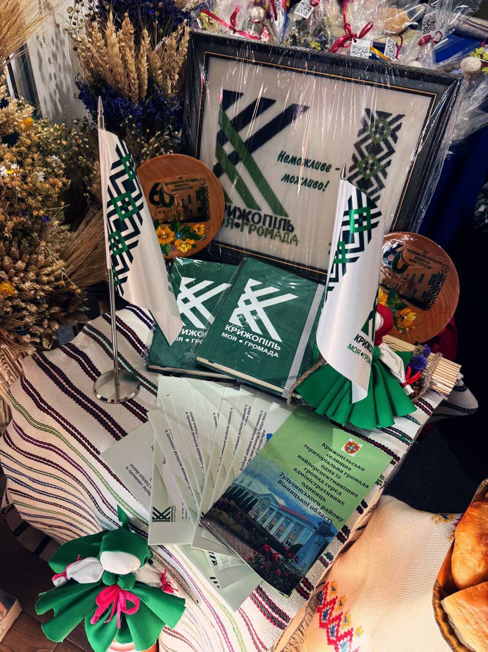 ✅ Делегація Крижопільської селищної ради, до складу якої увійшли Крижопільський селищний голова Володимир Василишен, начальник відділу культури, туризму та охорони культурної спадщини Валентина Чайковська, та головний спеціаліст з проєктного менеджменту, інвестицій та міжнародного співробітництва Надія Осадча, представила промоційну виставку Крижопільської територіальної громади.