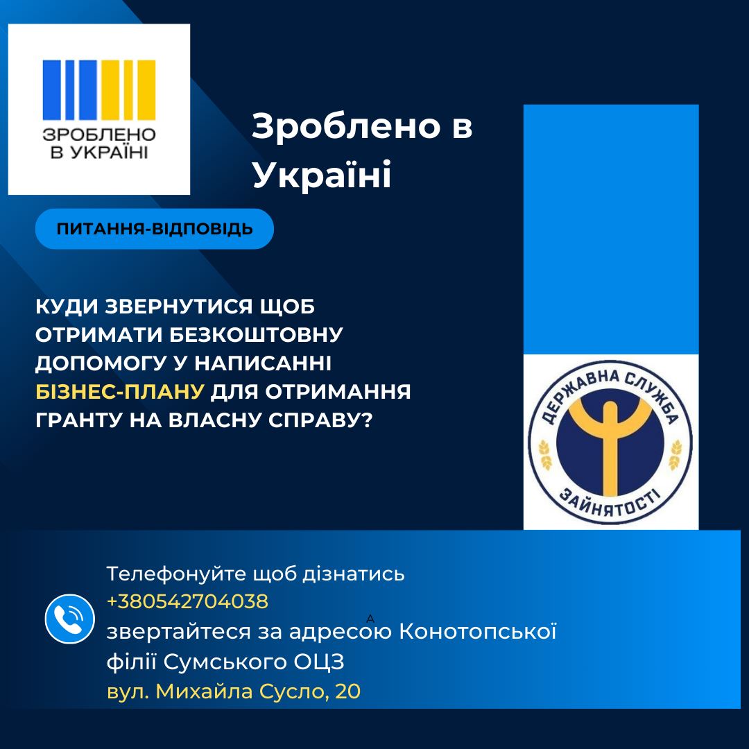 ✅ Звертайтеся до Конотопської філії Сумського обласного центру зайнятості, а саме до офісу «Зроблено в Україні». Наші висококваліфіковані фахівці готові надати вам повний супровід та професійні консультації.