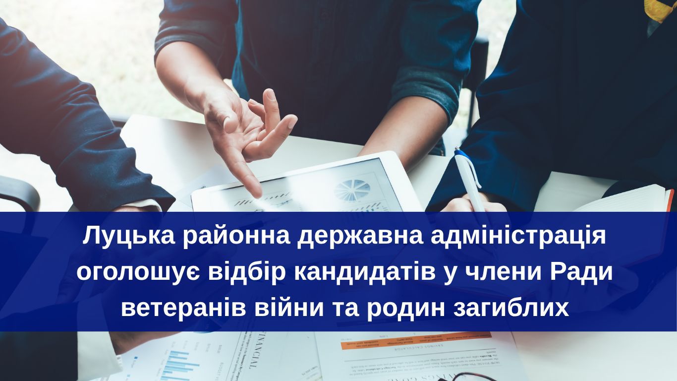 👥 Луцька районна державна адміністрація оголошує відбір кандидатів у члени Ради ветеранів війни та родин загиблих
