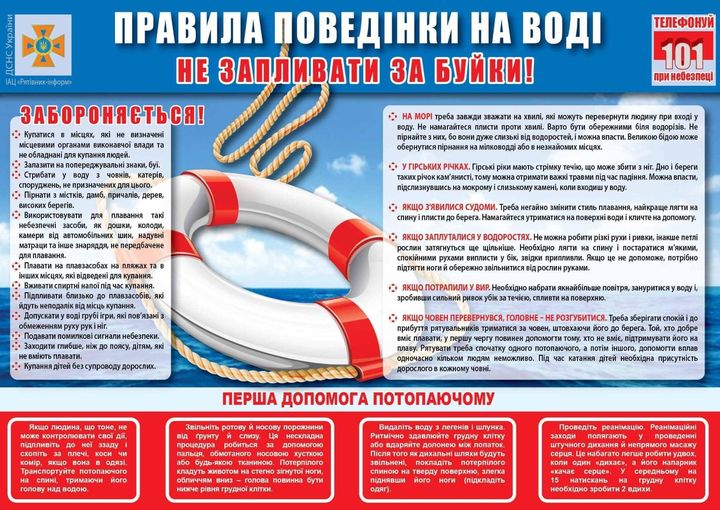 📌Відпочинок на воді (купання, катання на човнах) повинен бути тільки в спеціально відведених та обладнаних для цього місцях, на яких чергують рятувальники.