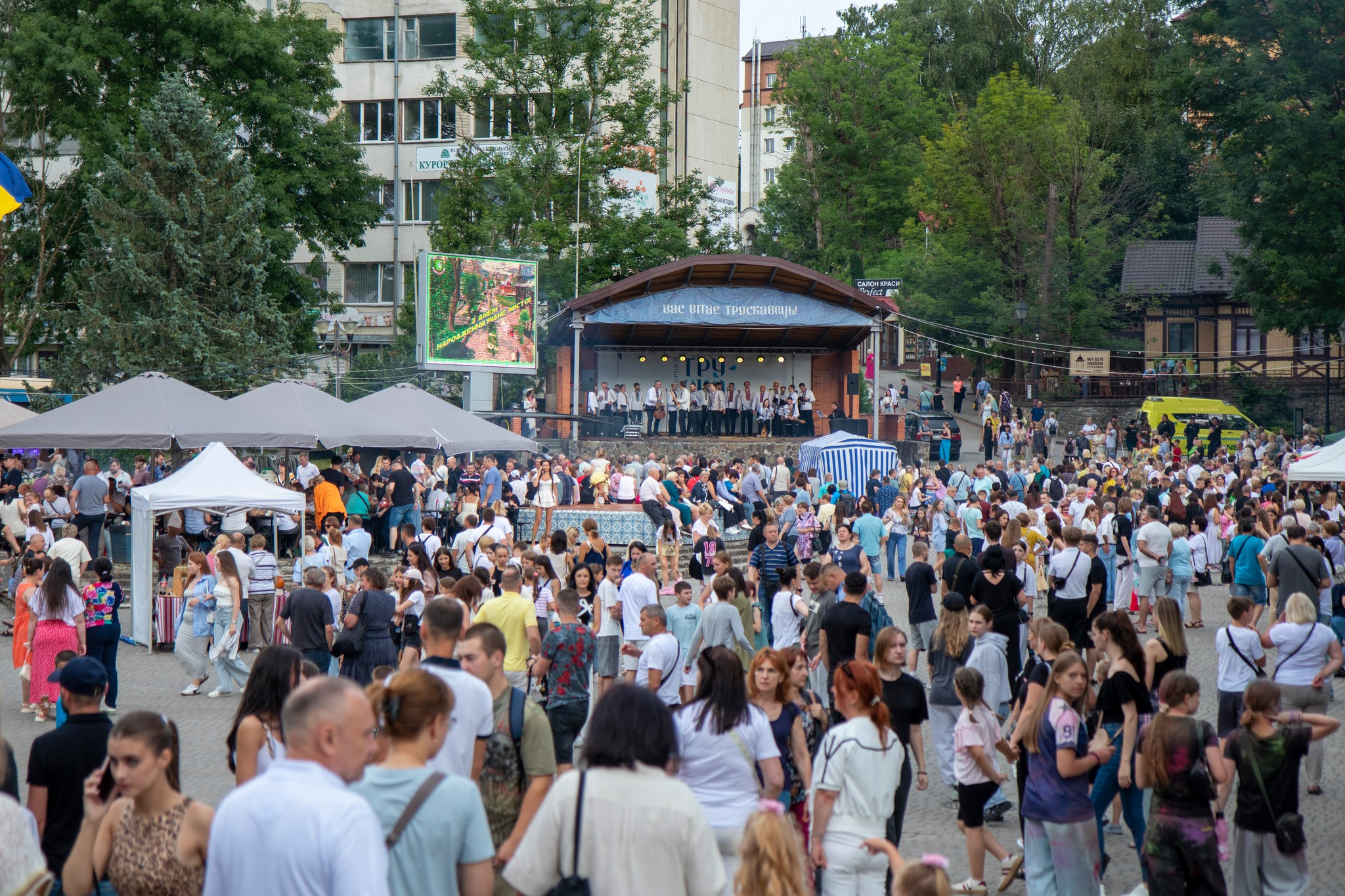 Це вже четвертий День міста та четвертий День медичного працівника, який Трускавець відзначає в умовах повномасштабної війни. Святкування відбуваються не заради розваги, а задля підтримки Збройних Сил України. Зокрема, благодійний ярмарок, що діяв у цей день, збирав кошти для ЗСУ, звіт про який буде оприлюднено завтра. Сьогоднішню святкову програму до Дня міста Трускавця підготовлено силами відділу культури Трускавецької міської ради (начальниця – Заслужена працівниця культури України Тетяна Татомир).