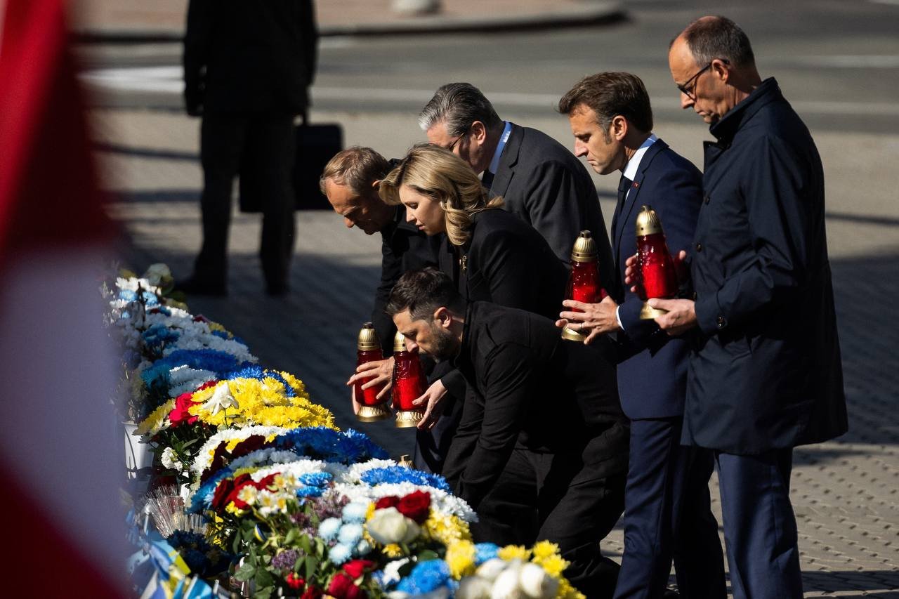 Серед членів делегації, що вшанувала пам’ять загиблих, — Еммануель Макрон, Фрідріх Мерц, Кір Стармер та Дональд Туск. Їхня присутність підкреслює підтримку України на міжнародному рівні. Вшанування пам’яті загиблих є важливим елементом підтримки морального духу українського суспільства.