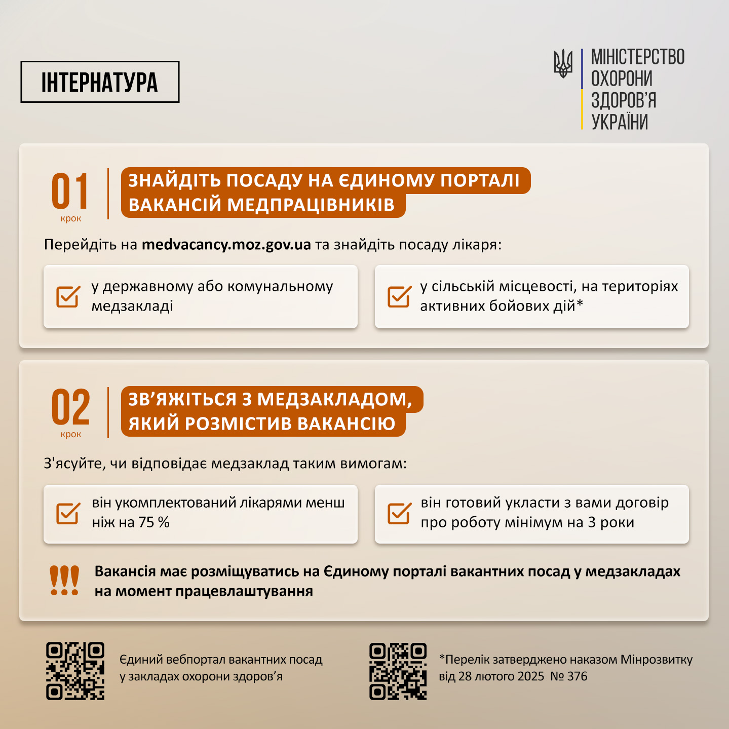 🎓💰 Лікарі, які починаючи з 2025 року закінчили інтернатуру в одному з 20 державних закладів вищої освіти, підпорядкованих МОЗ або МОН, можуть отримати 200 000 грн одноразової допомоги.