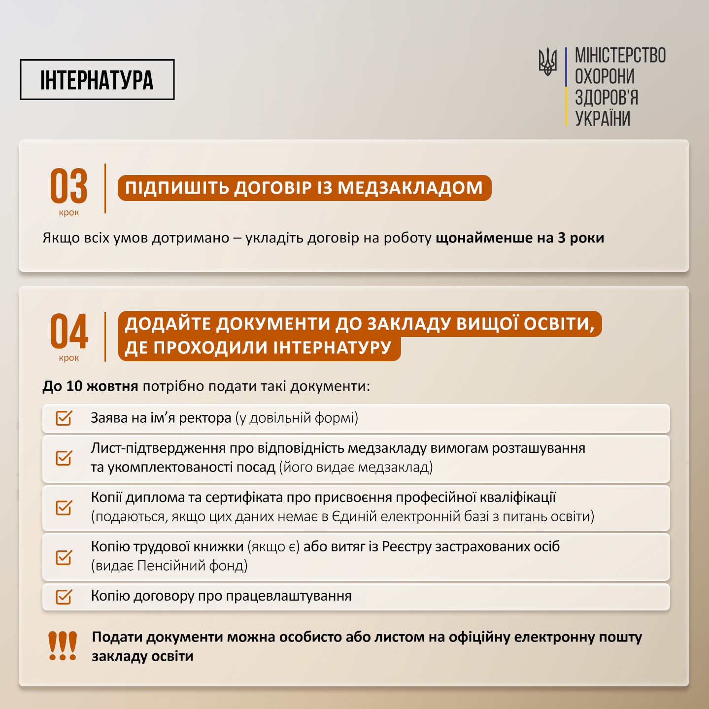 📌Вона надаватиметься у період дії воєнного стану лікарям, які після завершення інтернатури уклали договір на роботу лікарем щонайменше на три роки у медзакладі державної або комунальної форми власності: