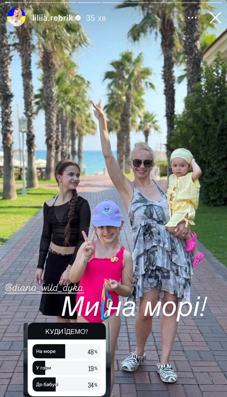 Телеведуча та акторка Лілія Ребрик поділилася зворушливими моментами свого сімейного відпочинку з чоловіком та трьома доньками. Зірка опублікувала у своєму фотоблозі світлини з сонячної Туреччини, де родина насолоджується морським узбережжям. Лілія зазначила, що переліт з України минув спокійно, проте, незважаючи на щастя своїх дітей, вона не може забути про трагедії, які щодня переживають інші українські родини.