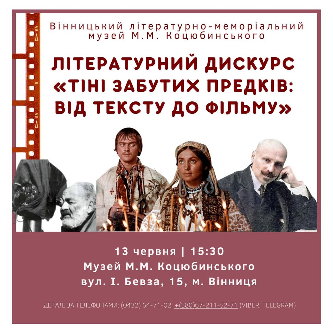 13 червня о 15:30 у Вінницькому літературно-меморіальному музеї М.М. Коцюбинського відбудеться унікальна зустріч-розповідь, присвячена переходу шедевру української літератури «Тіні забутих предків» від повісті Михайла Коцюбинського до культової кінострічки Сергія Параджанова. Ця подія стане чудовою нагодою для всіх шанувальників української культури та кіно.